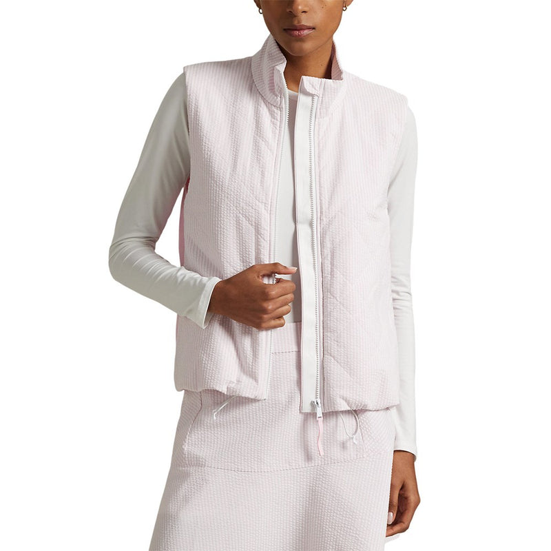 regular price £116.00RLX Ralph Lauren Women's Tour Pique Sleeveless Mock Neck 1/4 Zip Golf Top - White/Garden Pink/Pistachio