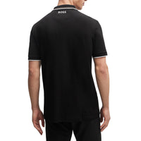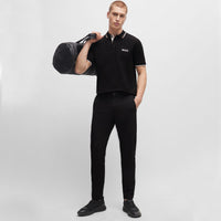 A premium golf polo shirt by BOSS Menswear. Detailed with contrast branding at the back neck and left chest, this short-sleeved polo shirt is cut to a regular fit in cotton-blend piqué with stretch for active movement. The collar and cuffs are trimmed with 3D stripes to deliver an athletic finish.