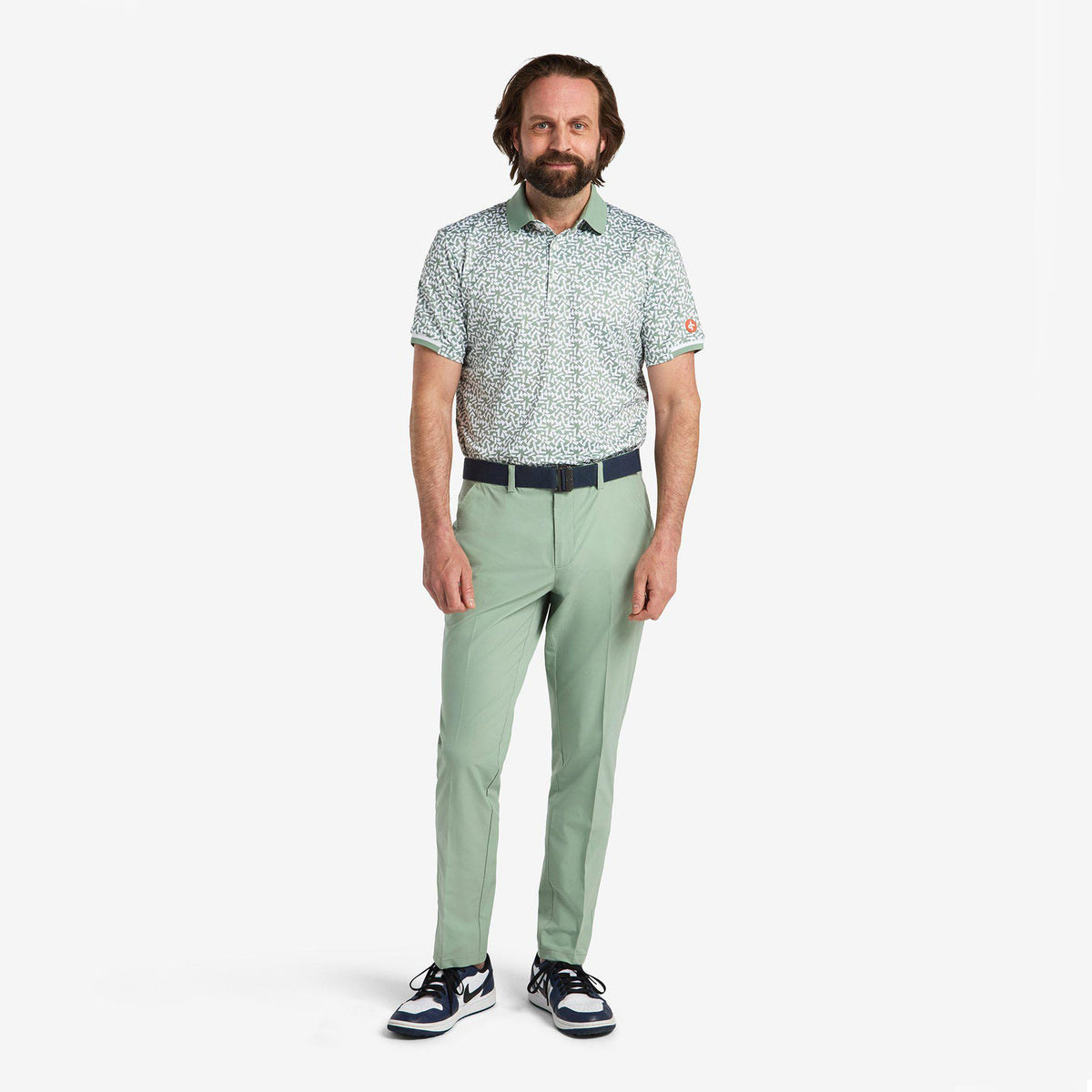 Camo polo is a technical polo in a classic fit with a fun and edgy design. Camo polo has a rubber logo on the left sleeve and the classic polo buttons at the front. Look good and feel good on the golf course with this polo.