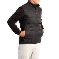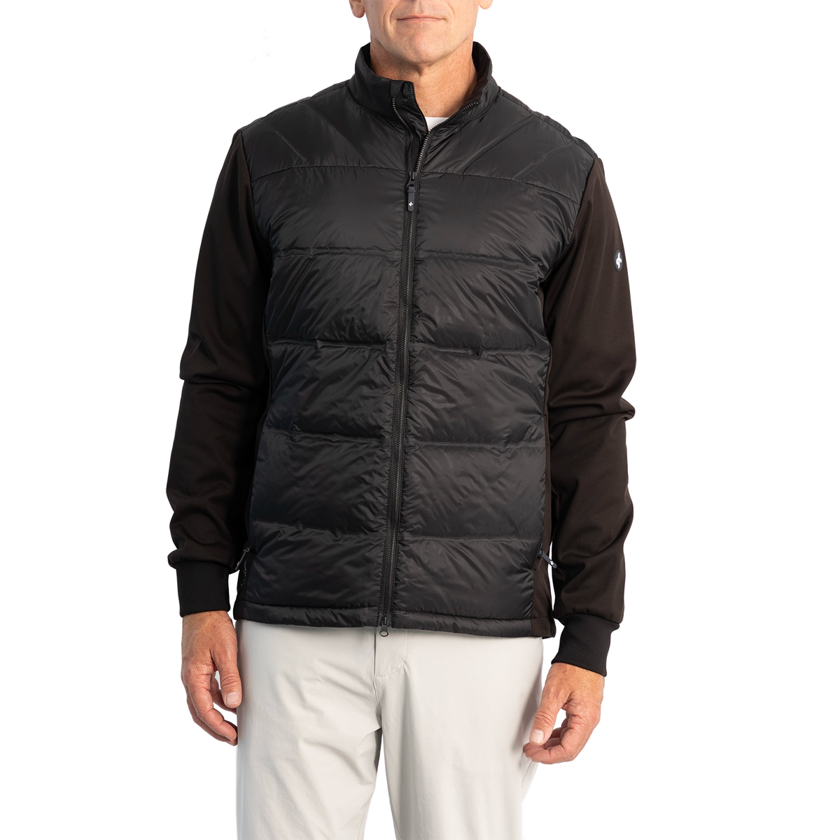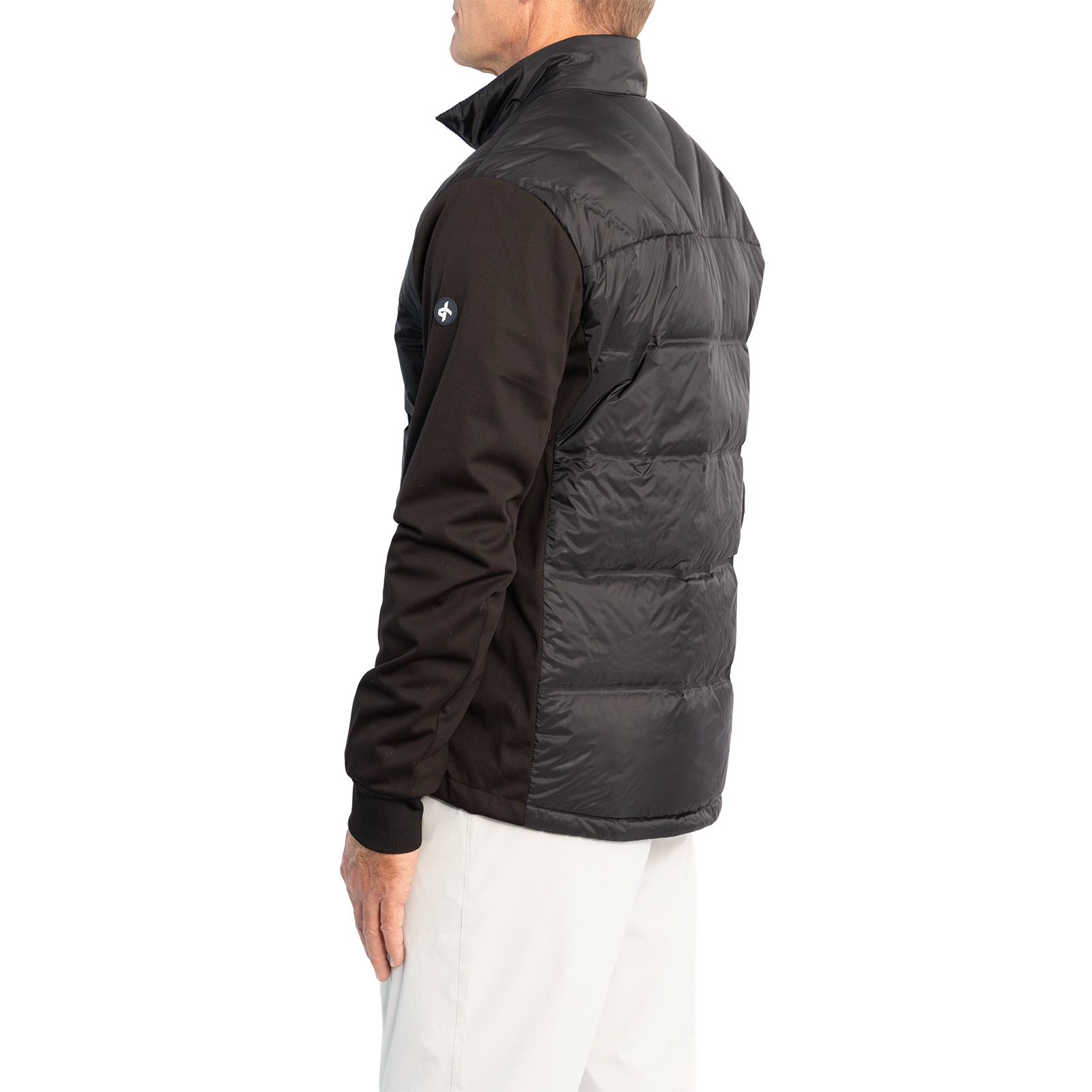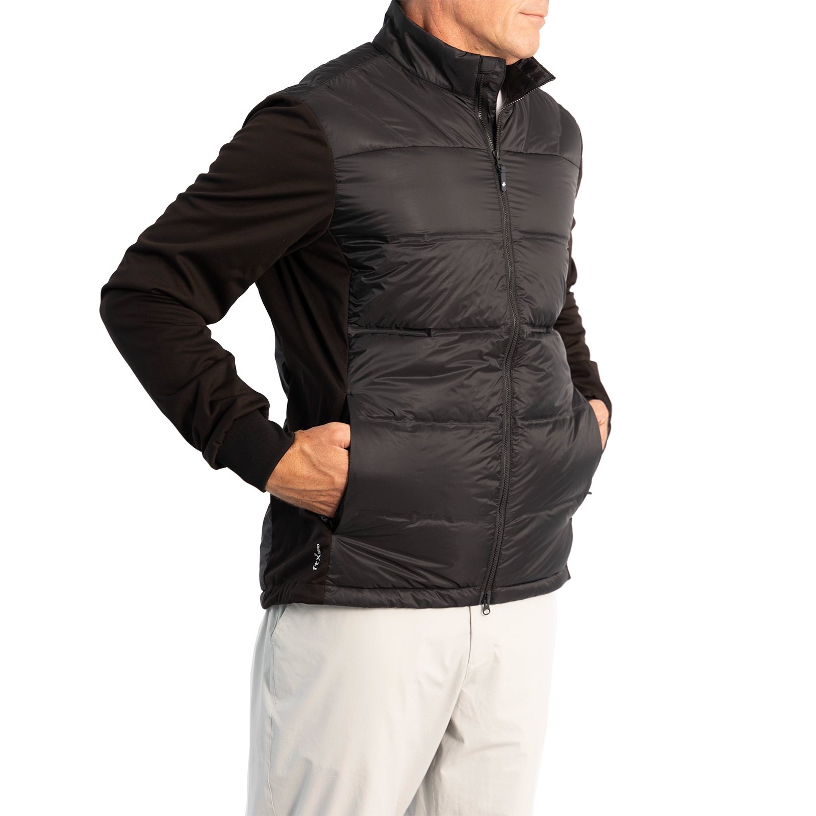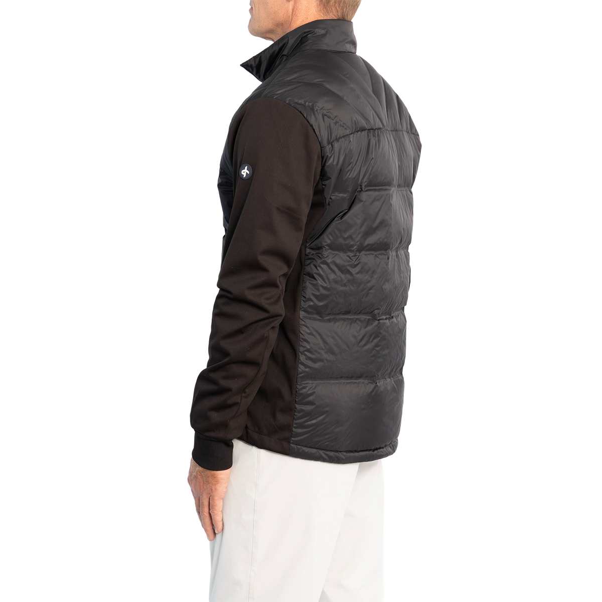 The Pro Hybrid Jacket provides a perfect combination of core warmth and movement on and off the course. A great jacket to add to your wardrobe, perfect for in between seasons. Being a level warmer and more padded than our best-selling classic Hybrid Jacket, the pro hybrid jacket is also a lightweight and packable jacket with down padding in front and back. The jacket has a regular fit. A classic cut with a timeless look.