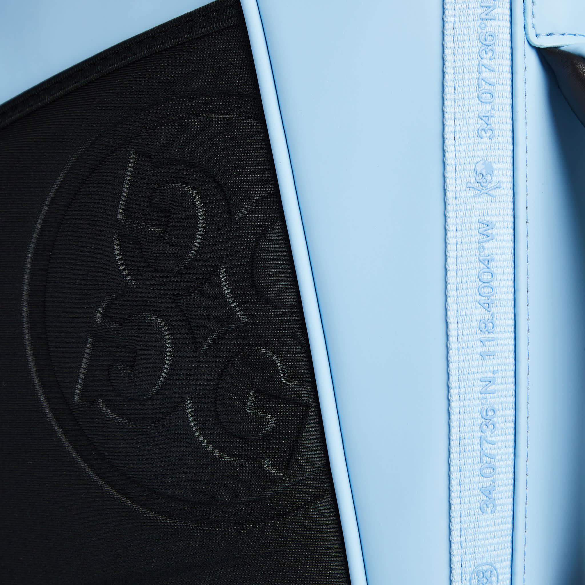 G/FORE'S BEST-SELLING CARRY BAG FEATURES A 4-WAY TOP DESIGNED WITH A VELOUR LINING FOR MAXIMUM CLUB PROTECTION, A ROTATOR STAND SYSTEM FOR MAXIMUM STABILITY, A SELF-ADJUSTING CONVERTIBLE STRAP FOR AUTOMATIC EQUAL DISTRIBUTION, AND A COMPRESSION MOLDED NEOPRENE BACK PANEL FOR COMFORT. THE DAYTONA PLUS FEATURES ELEVATED GROSGRAIN DETAILING AND QUILTED PANELS, PLUS A SELF-COLOURED RAIN HOOD, AND AN UMBRELLA HOLDER. IT'S ALSO EQUIPPED WITH SEVERAL POCKETS, INCLUDING A LARGE GARMENT COMPARTMENT, WATER RESISTANT POCKET FOR PERSONAL ITEMS, COOLER-LINED WATER BOTTLE SLEEVE, MAGNETIC VELOUR-LINED RANGEFINDER POCKET, AND A PEN POCKET. WEIGHS 5.75 LBS.
