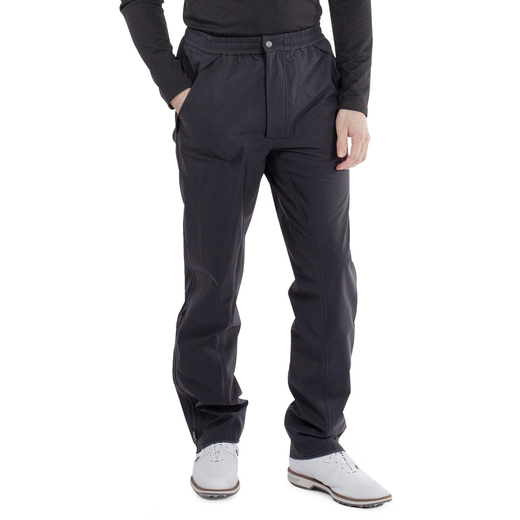 Thoughtful details elevate the design to meet the needs of avid golfers. The adjustable leg width at the hem allows for a customized fit over your regular golf pants or base layers, while the elasticated waist with a drawstring ensures a secure, comfortable fit. Fleece-lined front pockets keep your hands warm during cold, wet weather, and the split inseam design improves abrasion resistance for greater durability. The added abrasion-resistant fabric at the pant hem ensures the pants stand up to tough conditions, round after round.