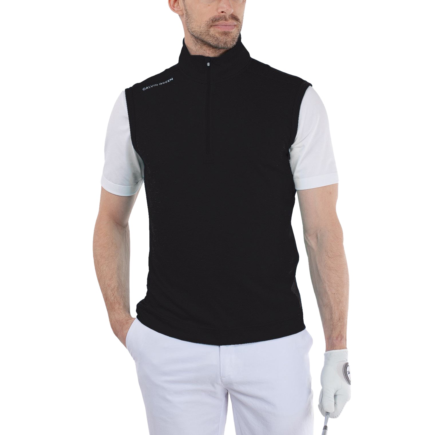 Engineered for golfers who want versatile layering without bulk, the Galvin Green Del Quarter-Zip Thermal Golf Vest is designed to deliver lightweight warmth and exceptional comfort. Rated with Warming Effect #1, this vest provides light thermal insulation, making it the perfect choice for mild or cool conditions. Crafted with INSULA™ technology, the fabric is soft, stretchy, quick-drying, and extremely breathable, ensuring comfort whether worn over a shirt or layered under a jacket.