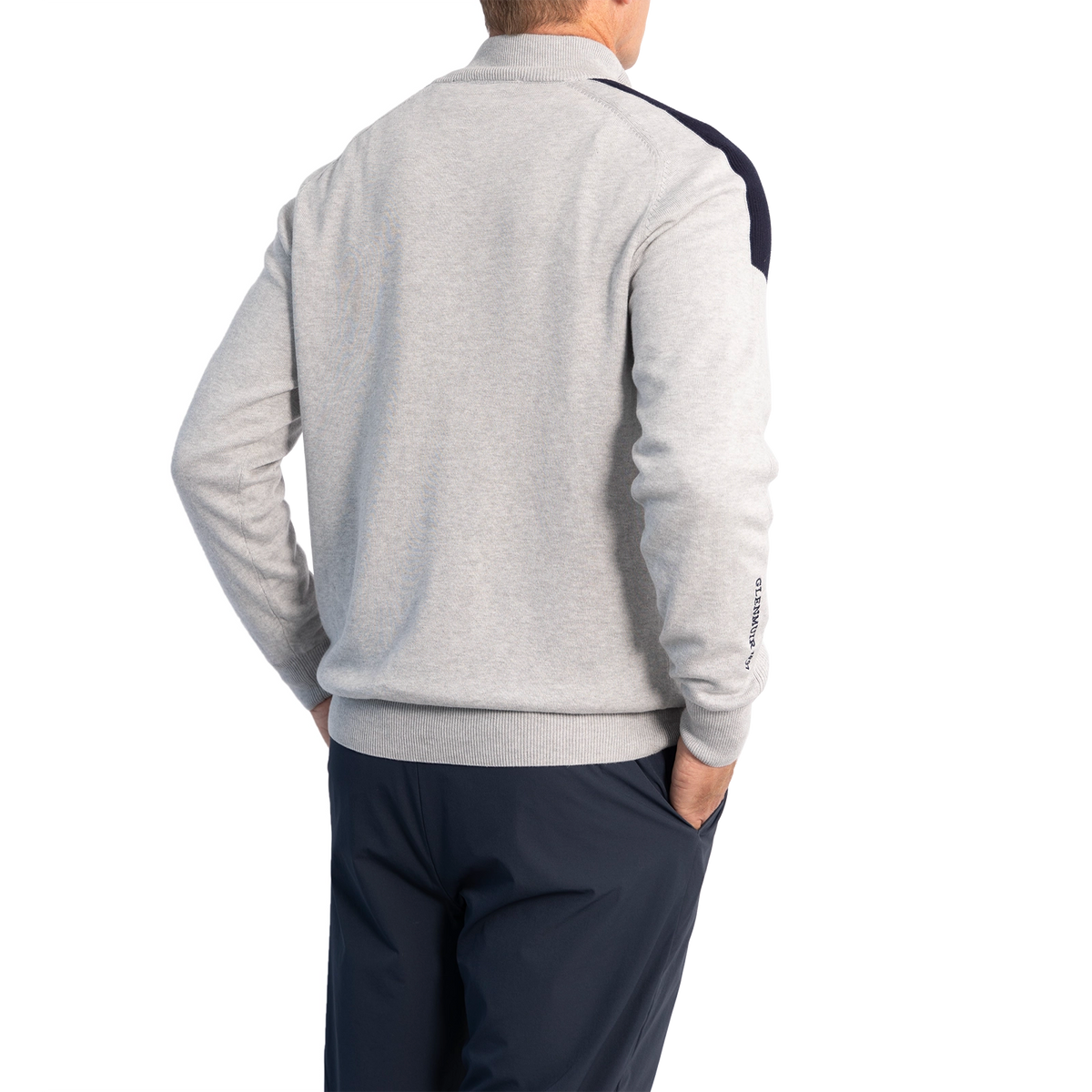 Crafted from premium combed cotton, this sporty golf sweater is designed to offer both warmth and breathability, ensuring comfort in all playing conditions. The distinctive ribbed sleeve design adds a touch of sophistication and texture, setting it apart from the ordinary. Featuring a convenient quarter YKK zip for easy wear and temperature control, this sustainable g.Selkirk sweater is as practical as it is stylish. Crafted for the discerning golfer who appreciates the finer details, this sweater not only enhances your performance on course but also elevates your style beyond it.