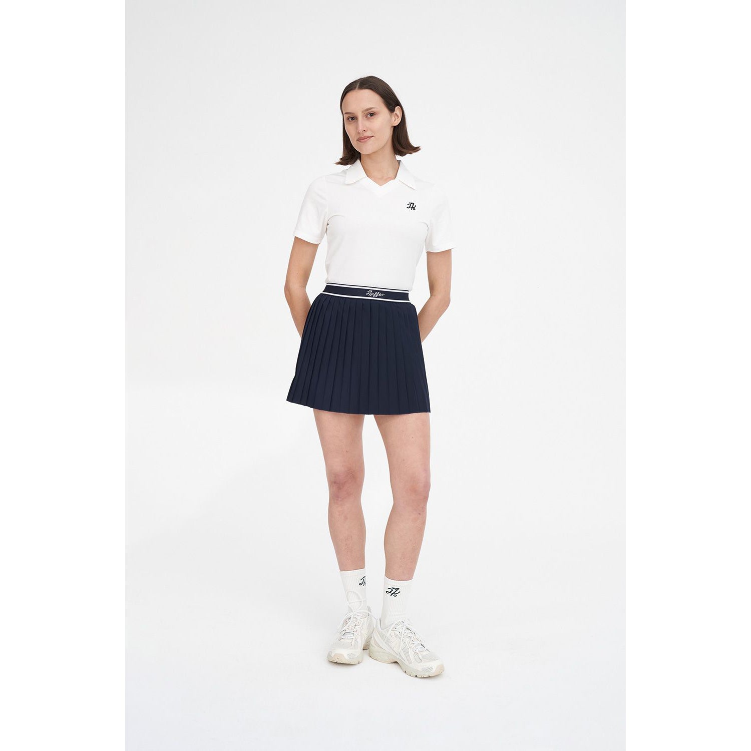 -90% Polyester 10% Spandex / 130gsm -Mini length -A-line Skirt -Knife Pleats -Custom Huffer branded elastic -Built in bike short with side pockets