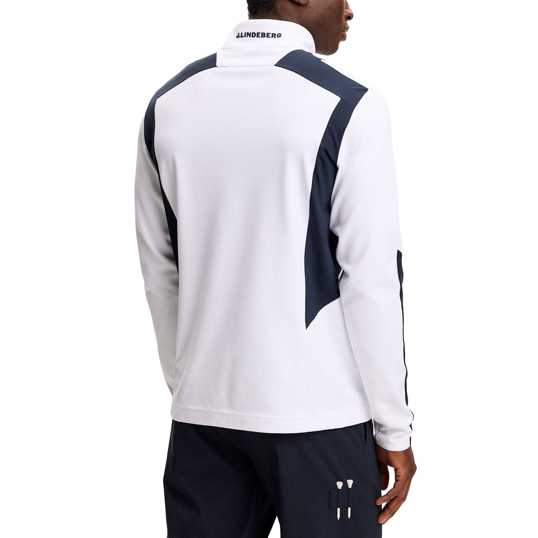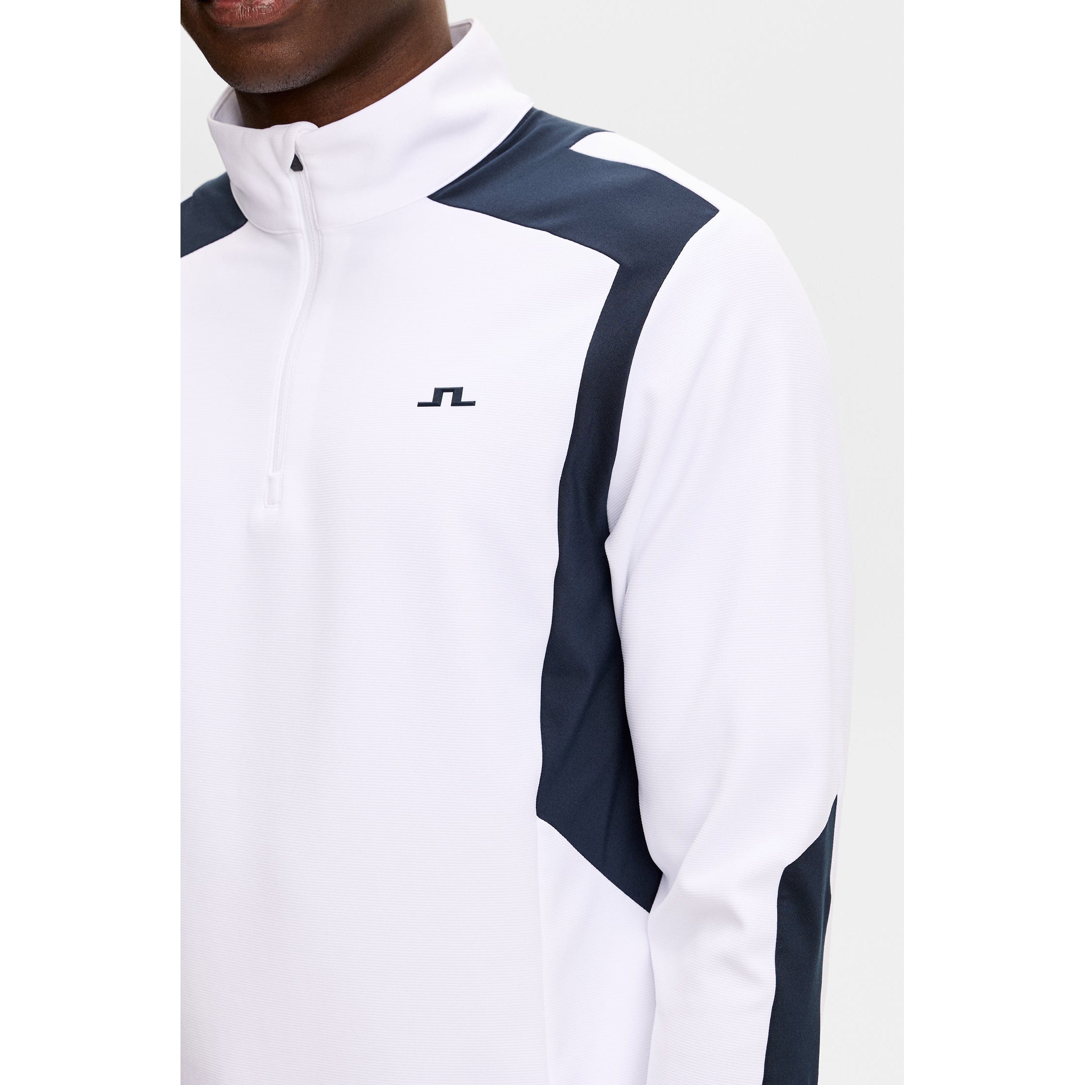 Signature Branding: Bridge logo on the chest for subtle J.LINDEBERG identity.