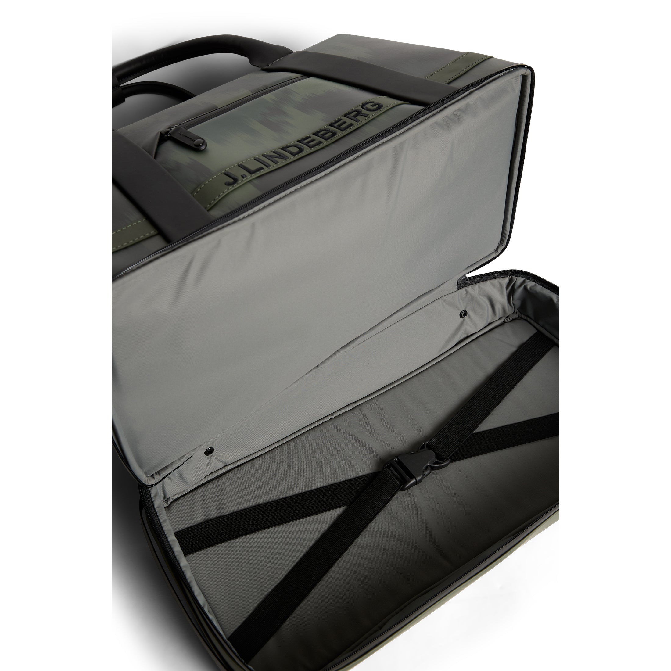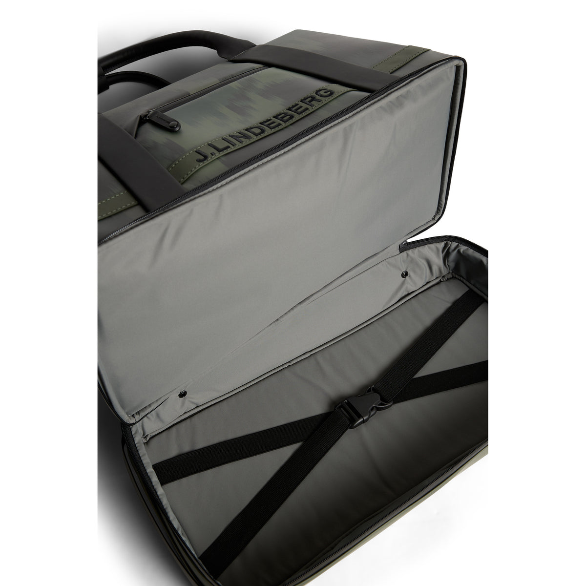 Designed with a spacious main compartment and sturdy construction, it features two vented sections for added breathability and a water-resistant zipper to protect your belongings. A zippered lower compartment provides quick-access storage, perfect for shoes or gear. Embroidered J.Lindeberg branding and Bridge logos on both sides complete the look with signature refinement.