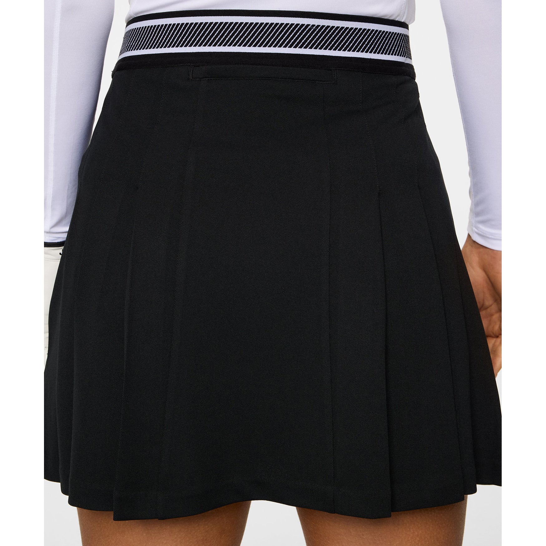 Timeless style meets modern performance in the J.Lindeberg Women's Harlow Skirt. Designed with stitched-down pleats and a bold branded waistband, this skirt offers a crisp, structured look made for movement. Crafted from a breathable pique fabric with moisture-wicking and fast-drying properties, it keeps you feeling cool and polished through every round. Built-in shorts and a back pocket add all-day functionality to this course-ready staple.