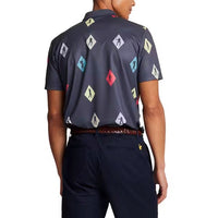 The Lyle & Scott Polka Diamond Polo Golf Shirt in Navy redefines classic golf apparel with a modern twist. Featuring a contemporary argyle pattern with subtle golfing graphics, this polo adds a stylish edge while maintaining the timeless sophistication expected on the course. Crafted from lightweight, sweat-wicking stretch fabric, it ensures all-day comfort and unrestricted movement for your best game yet.