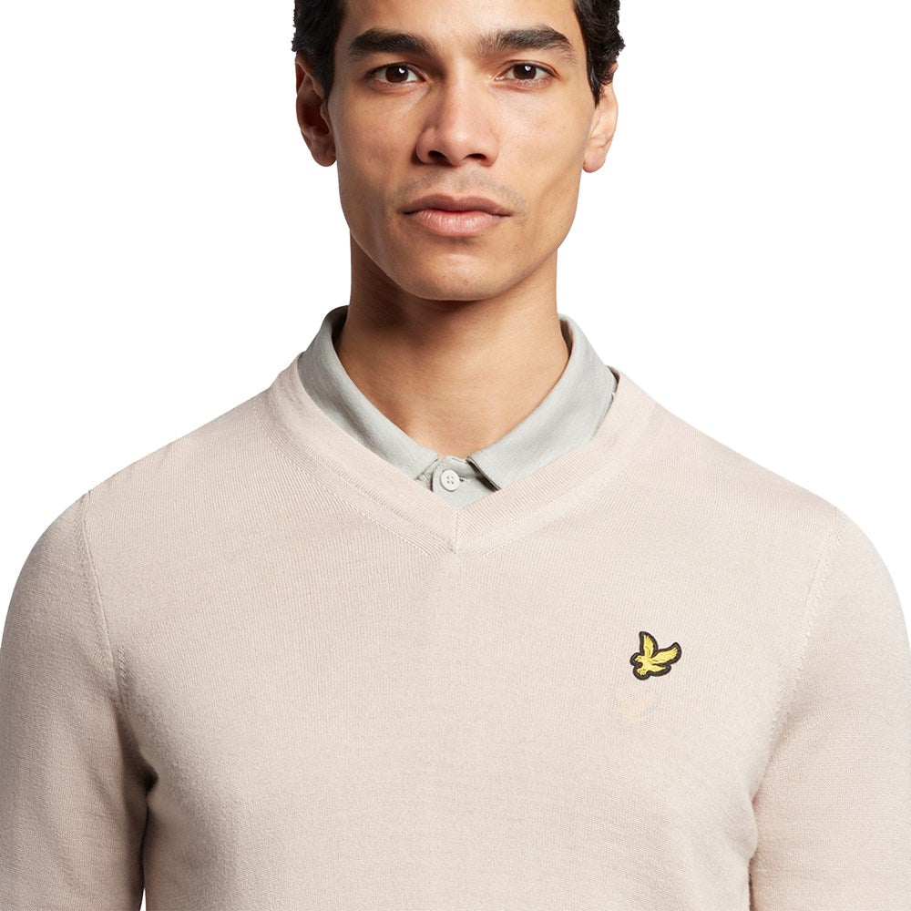 Lyle & Scott Golf Merino Blend V Neck Pullover - Pink Taupe