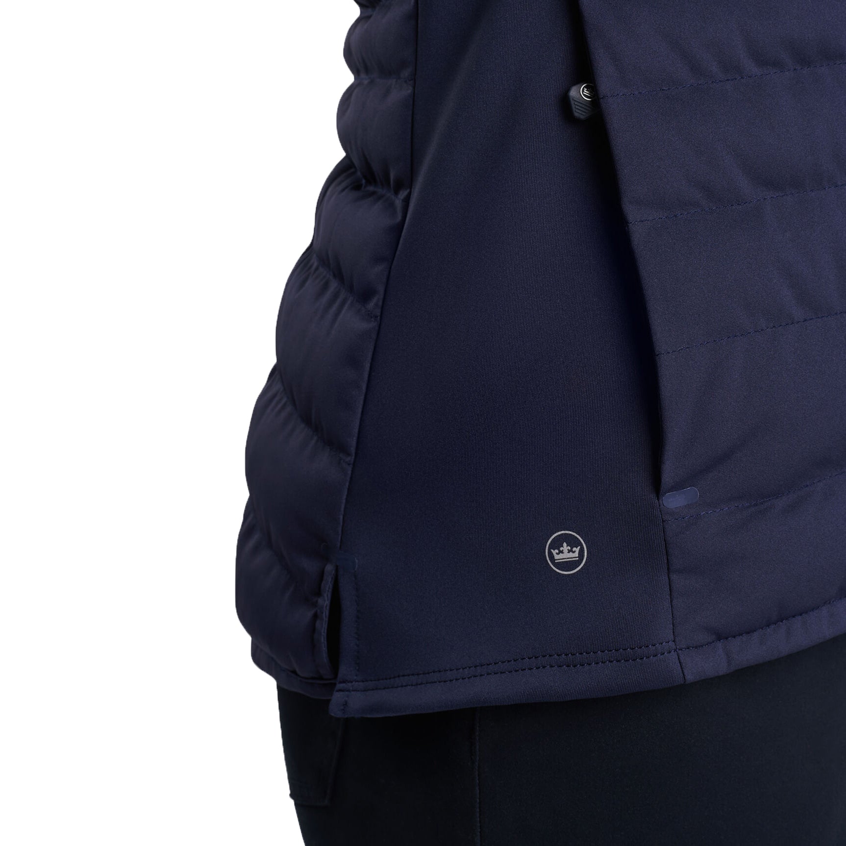 Women's vest with 100% polyester shell and 87% polyester / 13% spandex side panels