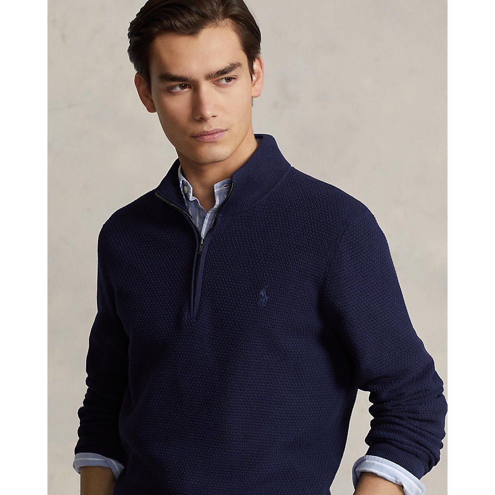 This cotton-blend sweater is made with COOLMAX® fibers to help keep you cool, dry, and comfortable. Ralph Lauren partners with Better Cotton™ to improve cotton farming globally. Better Cotton trains farmers to use water efficiently, care for the health of the soil and natural habitats, reduce use of the most harmful chemicals, and implement the principles of decent work.