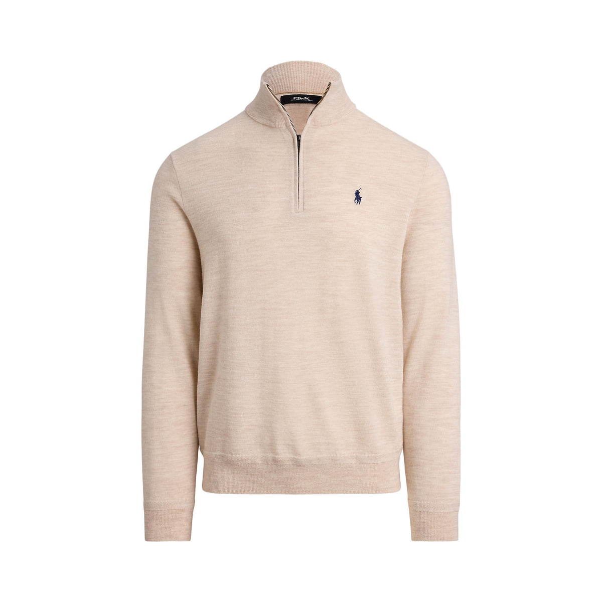 RLX Ralph Lauren Cotton Blend 1/4 Zip Golf Pullover - Ecru Tan Heather