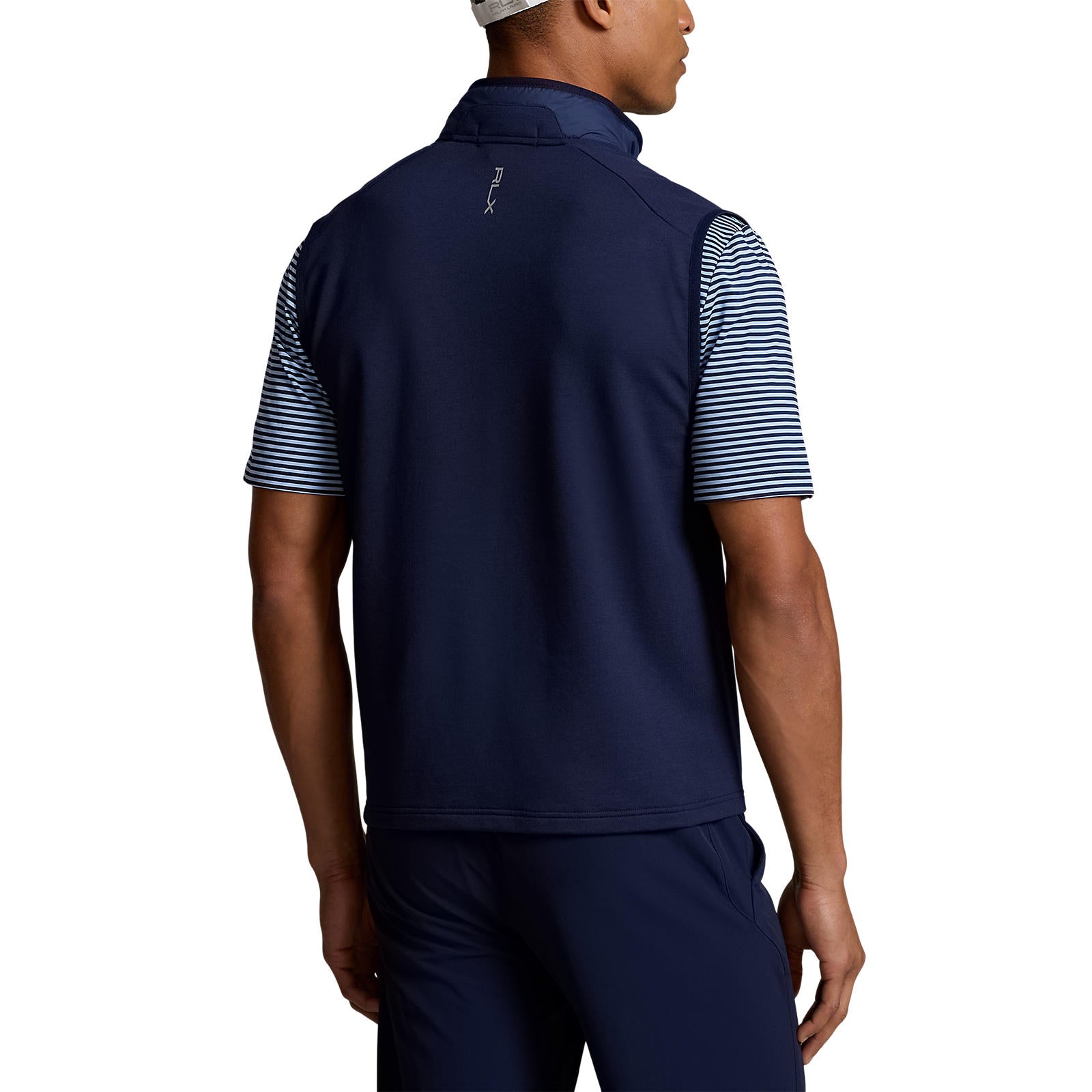 Lightweight Warmth with a Performance Edge The RLX Ralph Lauren Hybrid Full-Zip Golf Vest in Refined Navy is designed for golfers who demand warmth without sacrificing mobility. Crafted from stretch French terry with a quilted ripstop front panel, this vest provides lightweight insulation to keep you comfortable in cooler conditions.