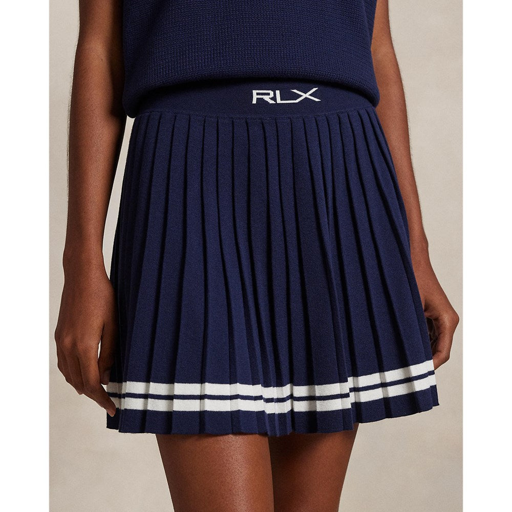 Classic sport style meets modern performance in the RLX Ralph Lauren Women's Knit Pleated Golf Skort. Designed with an A-line silhouette and cricket-inspired contrast stripes, this skort delivers standout style with a timeless twist. Made with COOLMAX® fibres, it helps regulate temperature and wick moisture, keeping you cool, dry, and comfortable throughout your round.