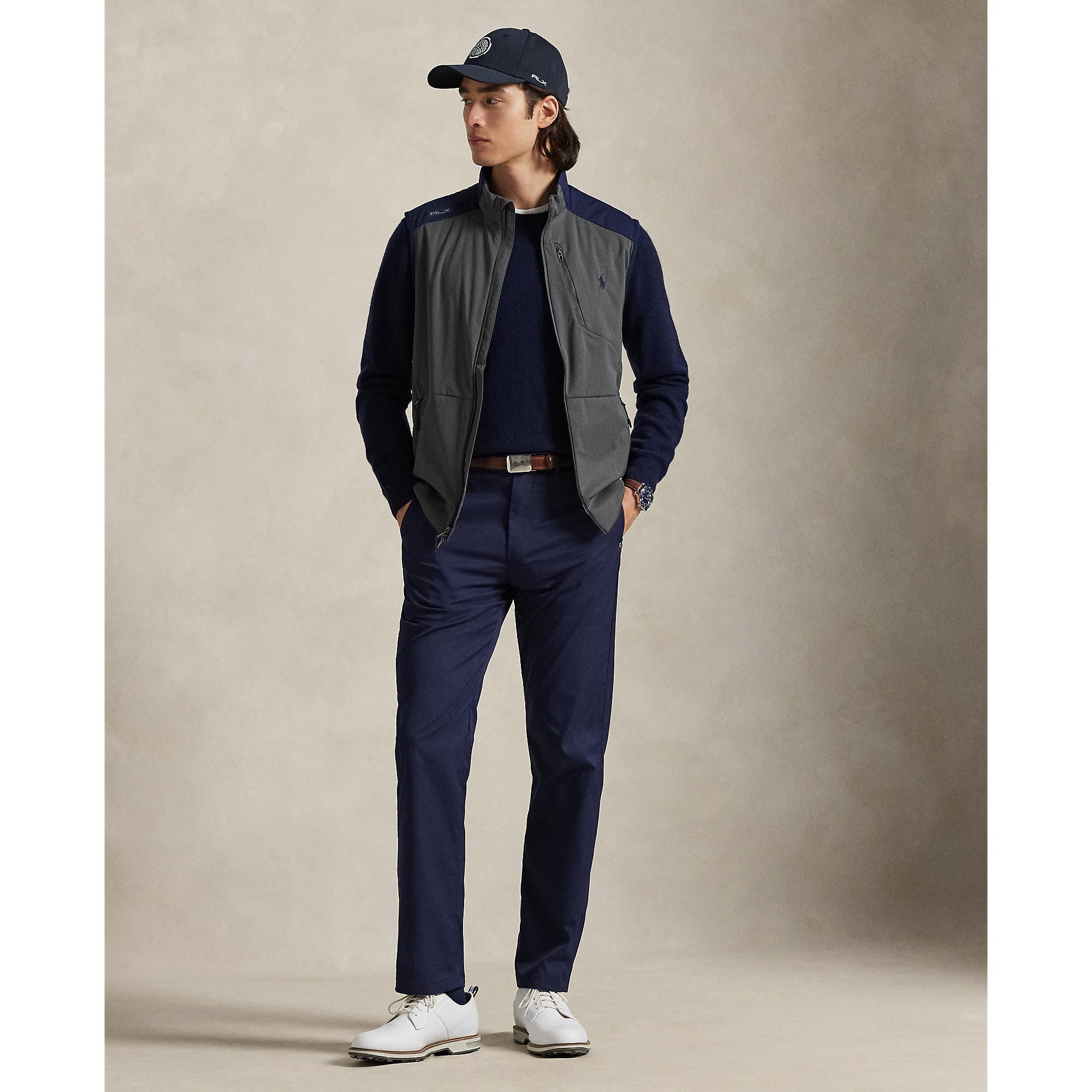 This colour-blocked gilet blends technical functionality with versatile style. Water-repellent fabric, multiple pockets, and a packable design make it perfect for golfers and outdoor enthusiasts seeking lightweight, breathable protection with signature RLX detailing.
