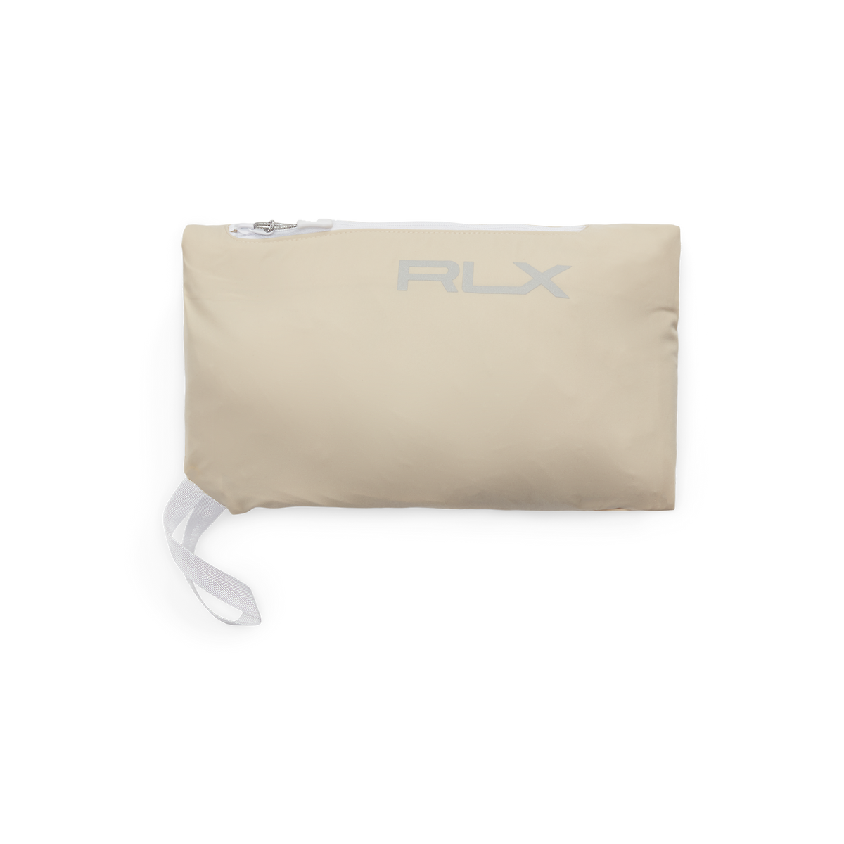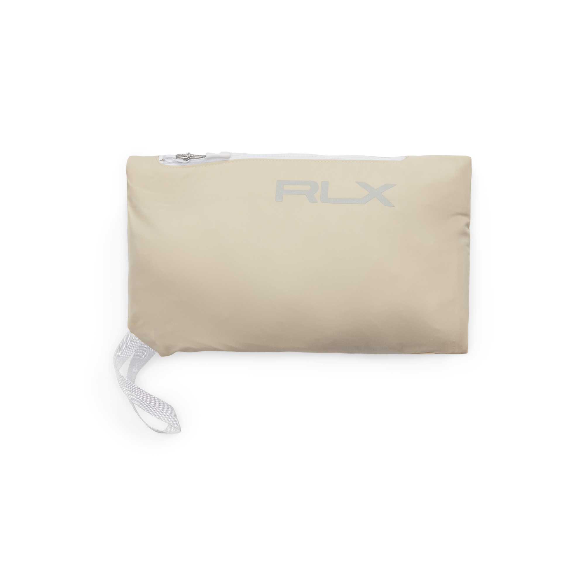 "RLX" logo printed at the right cuff, center back yoke, and packable bag.