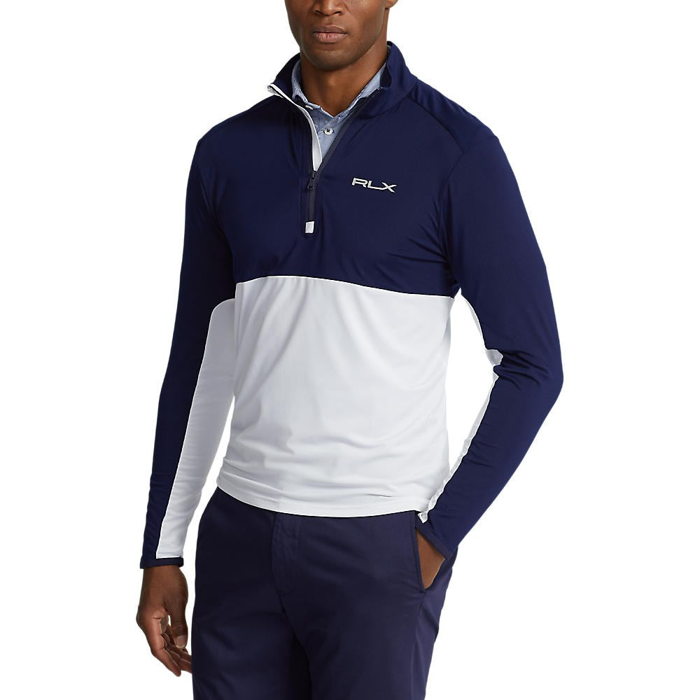 RLX Ralph Lauren Peached Airflow Jersey 1/4 Zip Midlayer - Pure White/ French Navy