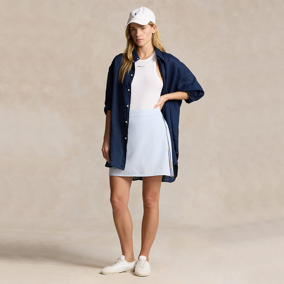 Constructed from performance stretch fabric, this new skort from RLX Ralph Lauren showcases side stripes and a pleated back for added style.