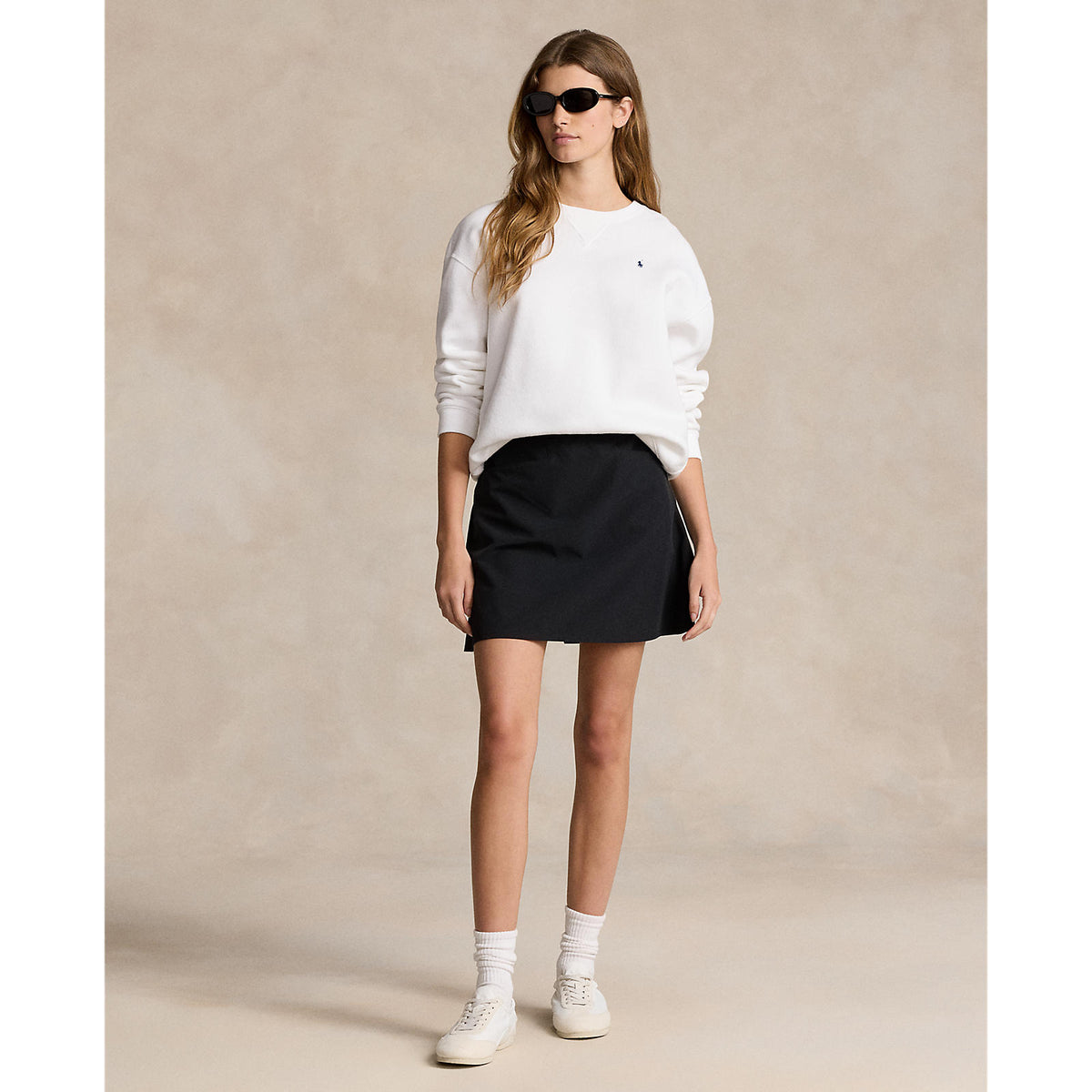 Straight fit. Intended to hit at the mid-thigh. Size medium has a 17" length. Skirt length changes ½" between sizes. Elasticized waist. Two front angled pockets. Back right welt pocket. Attached interior short. RLX rubber-printed at the front right hem. Back pleats. Back yoke. Shell and interior short: polyester, elastane.
