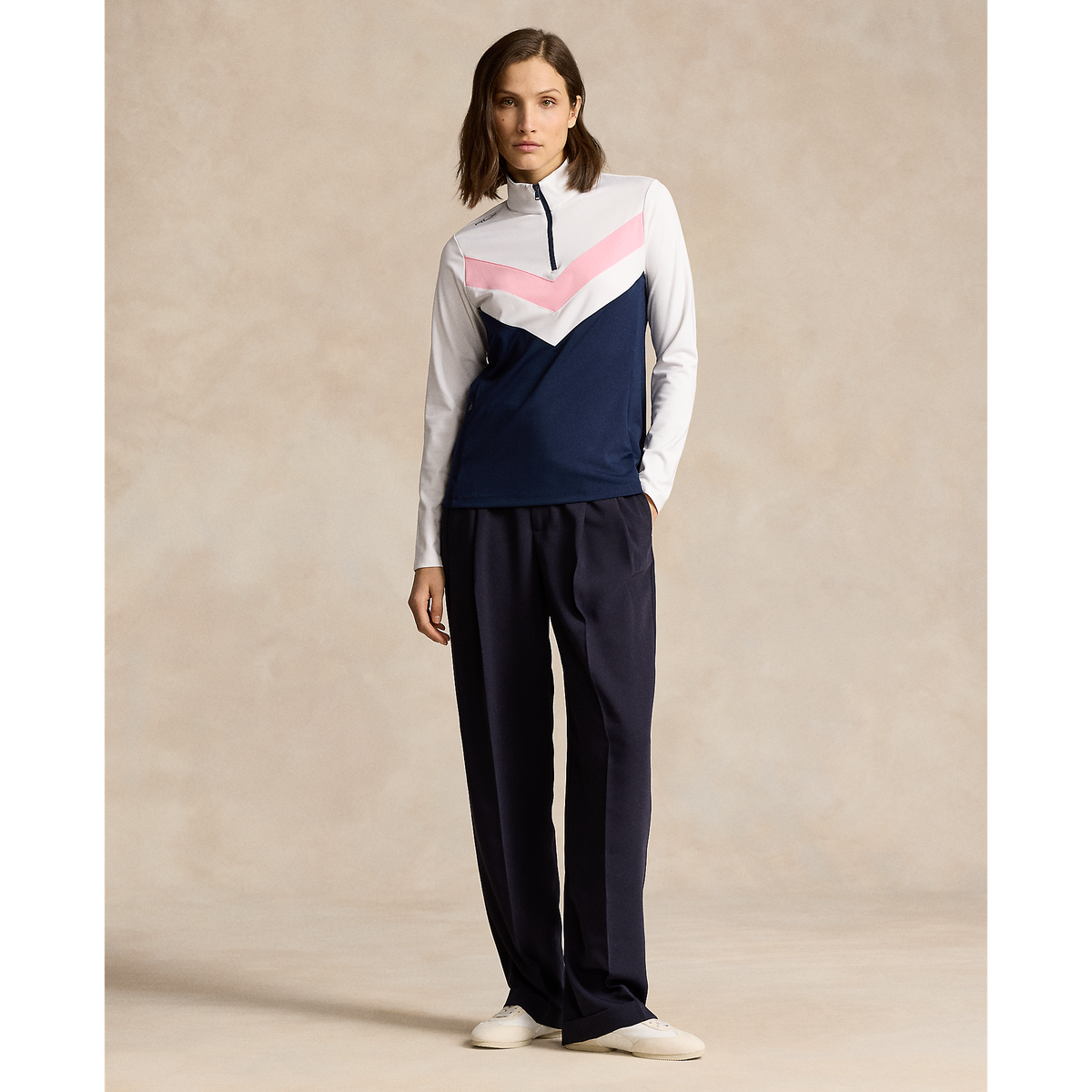 RLX Ralph Lauren Women's Power Stretch 1/4 Zip Pull Over - French Navy/White/Pink