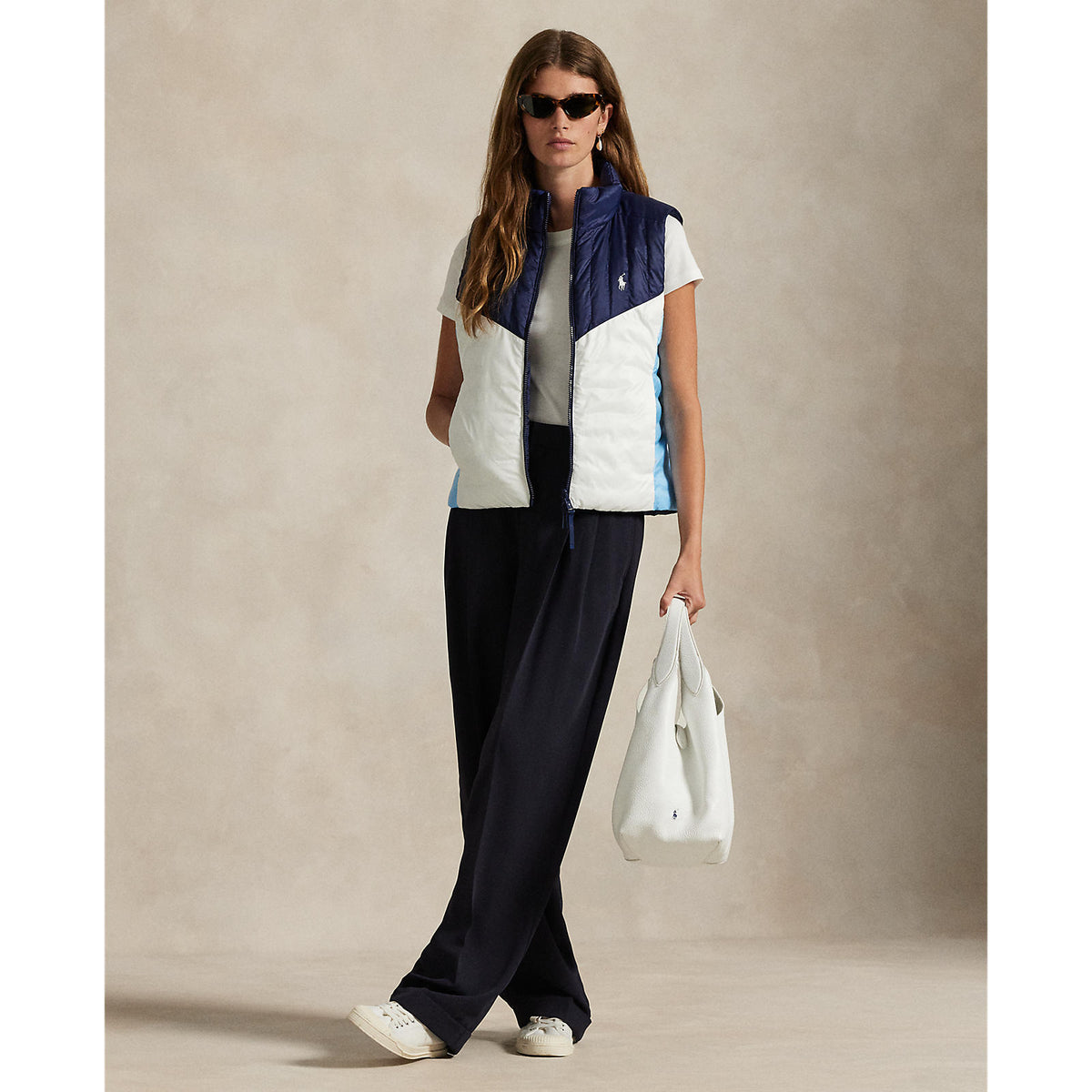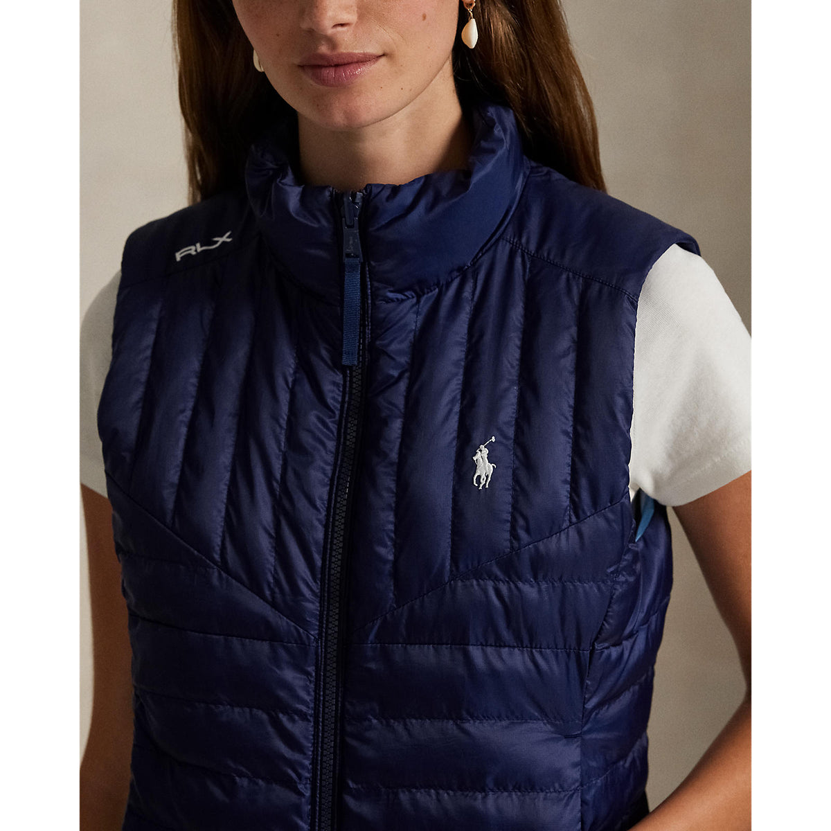 RLX Ralph Lauren Women's Reversible Quilted Ripstop Vest - Ceramic White/Refined Navy