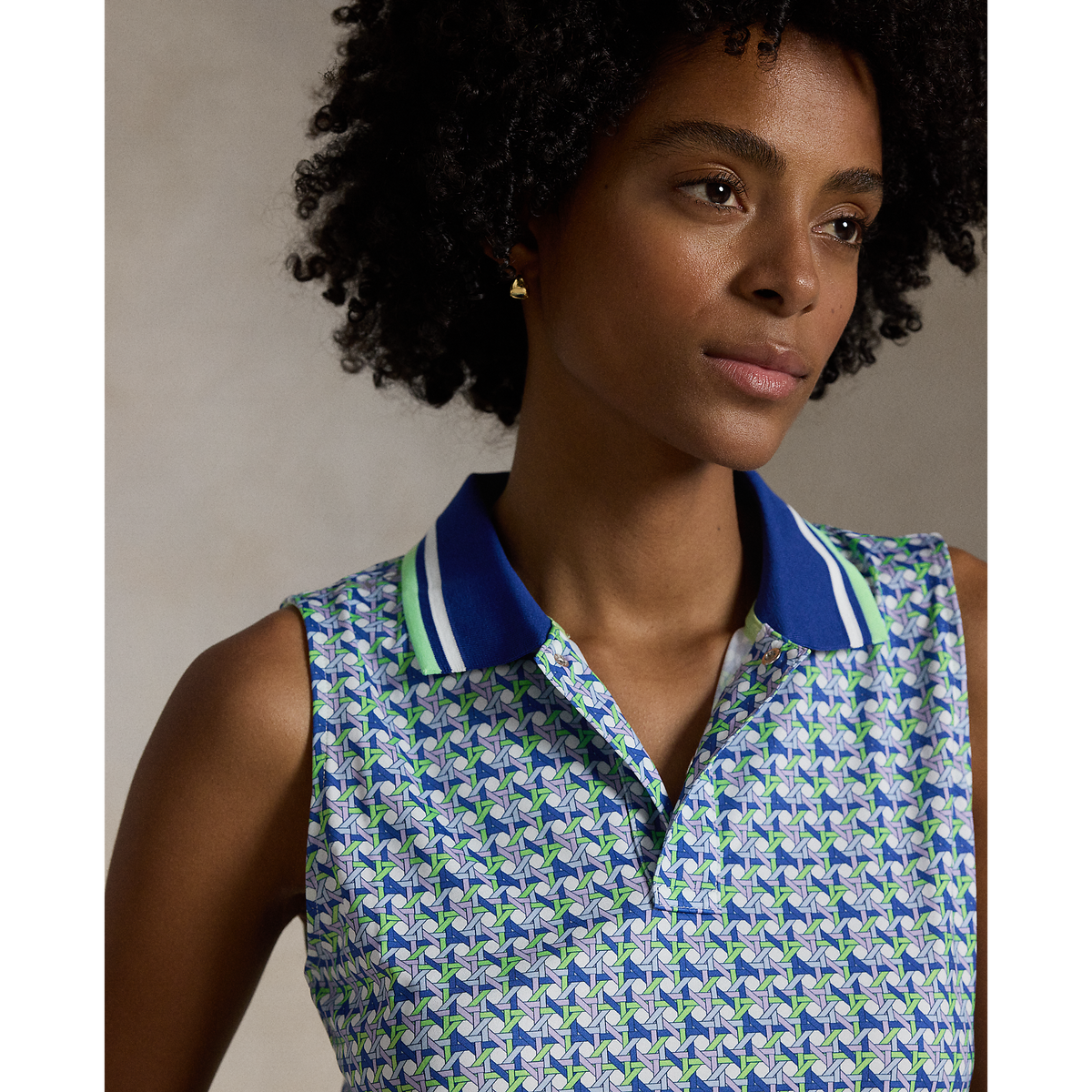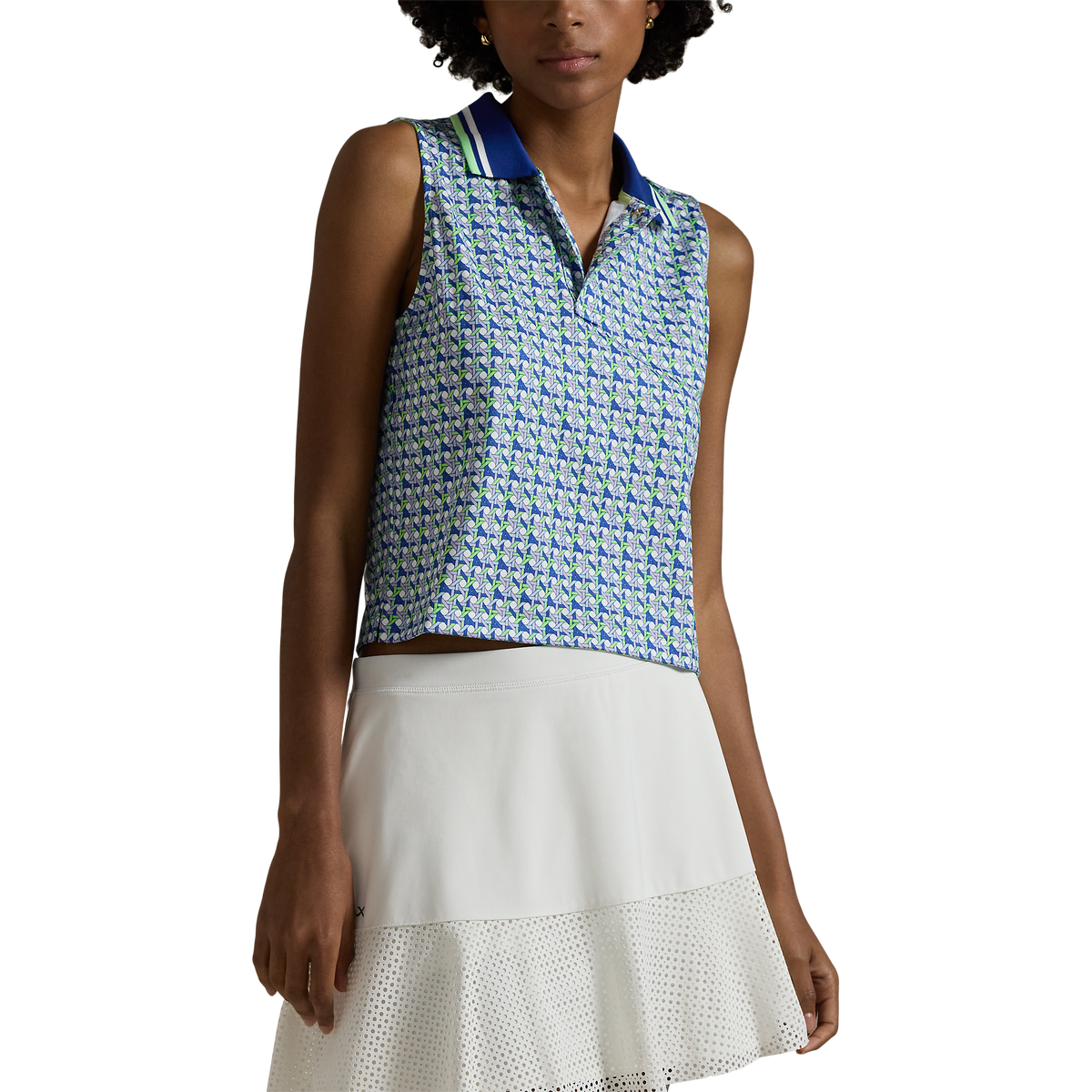 This sleeveless, cropped version of our Polo shirt is made with stretch jersey and features a small-scale graphic pattern. It's accented with striped tipping at the collar and our printed "RLX" logo at the right shoulder.