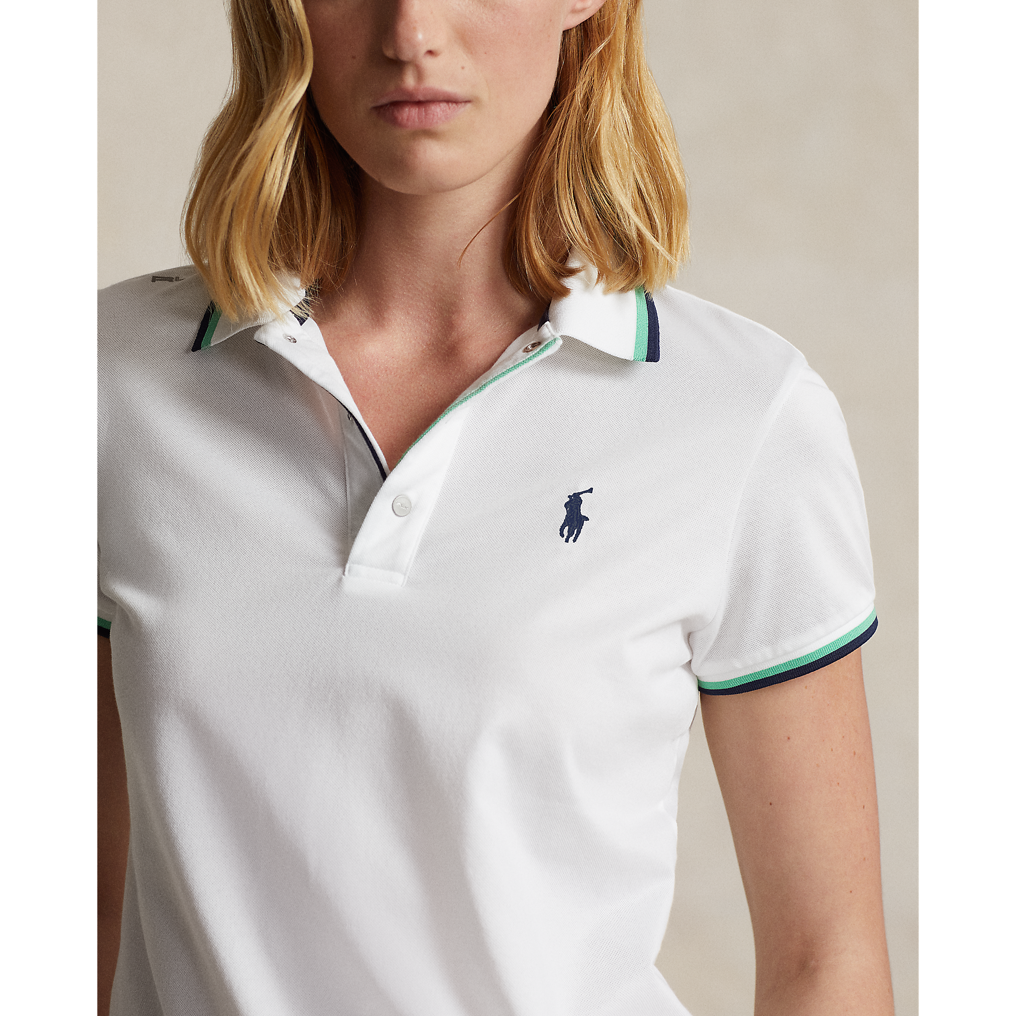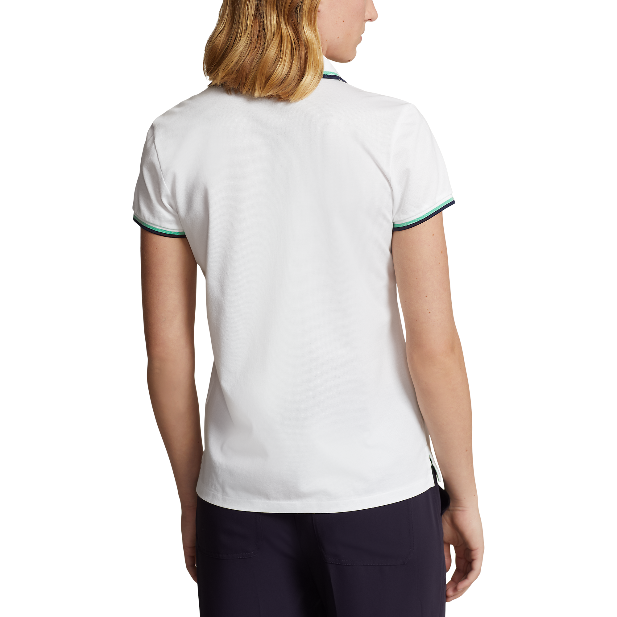 RLX Ralph Lauren Women's Tour Pique Golf Polo Shirt - Pure White/Navy/Green
