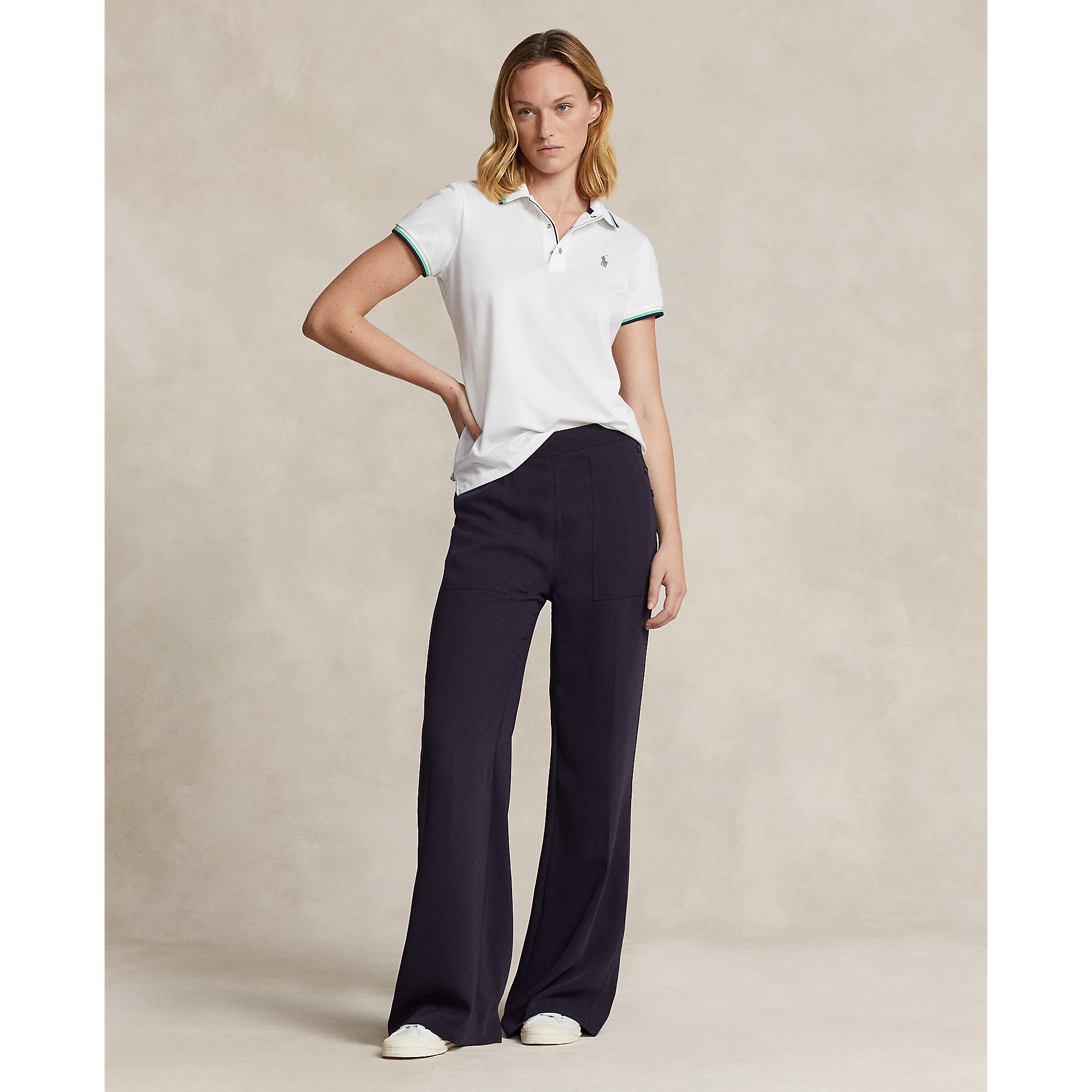 Match the colour detail in the collar and arm bands back to your new pants or skorts from Ralph Lauren
