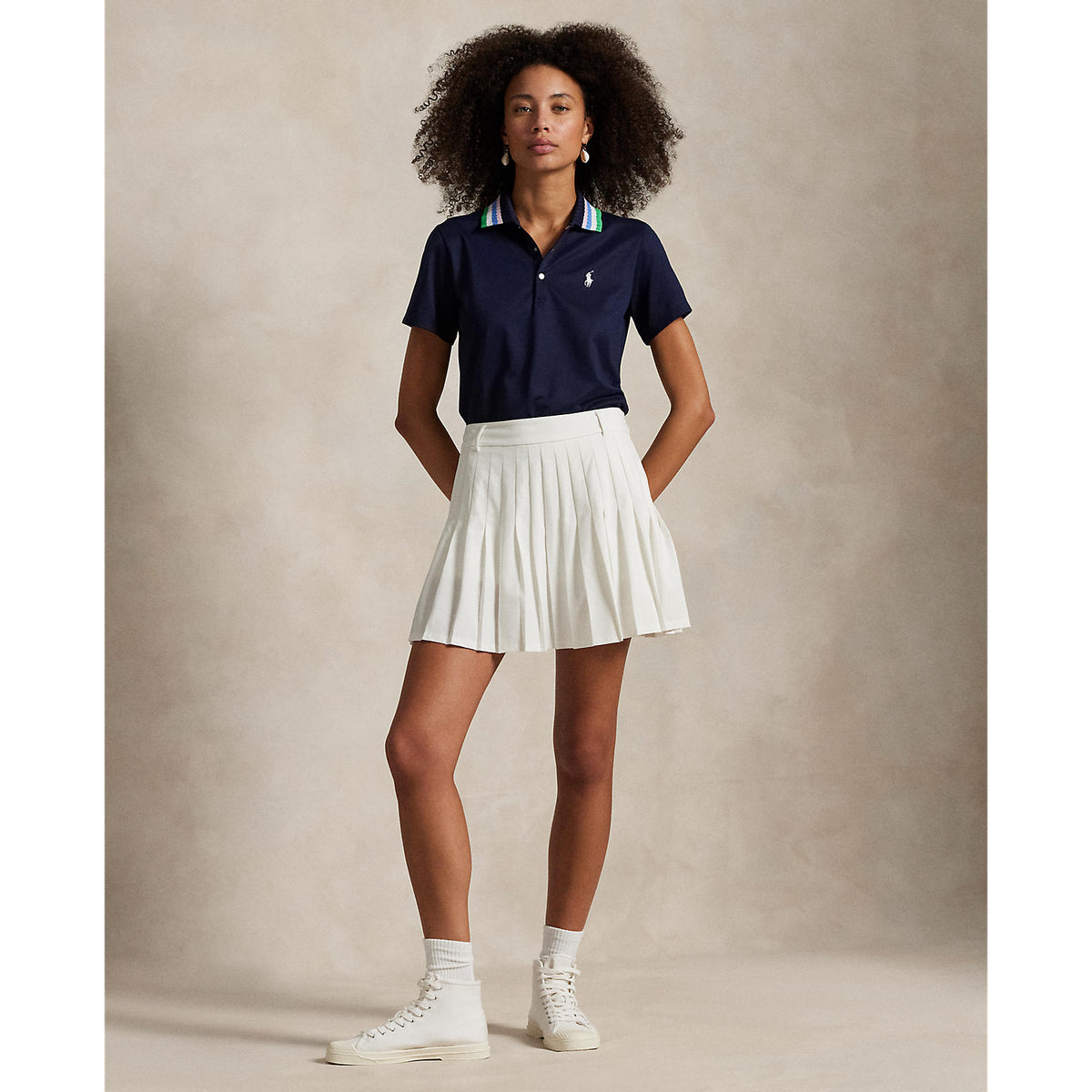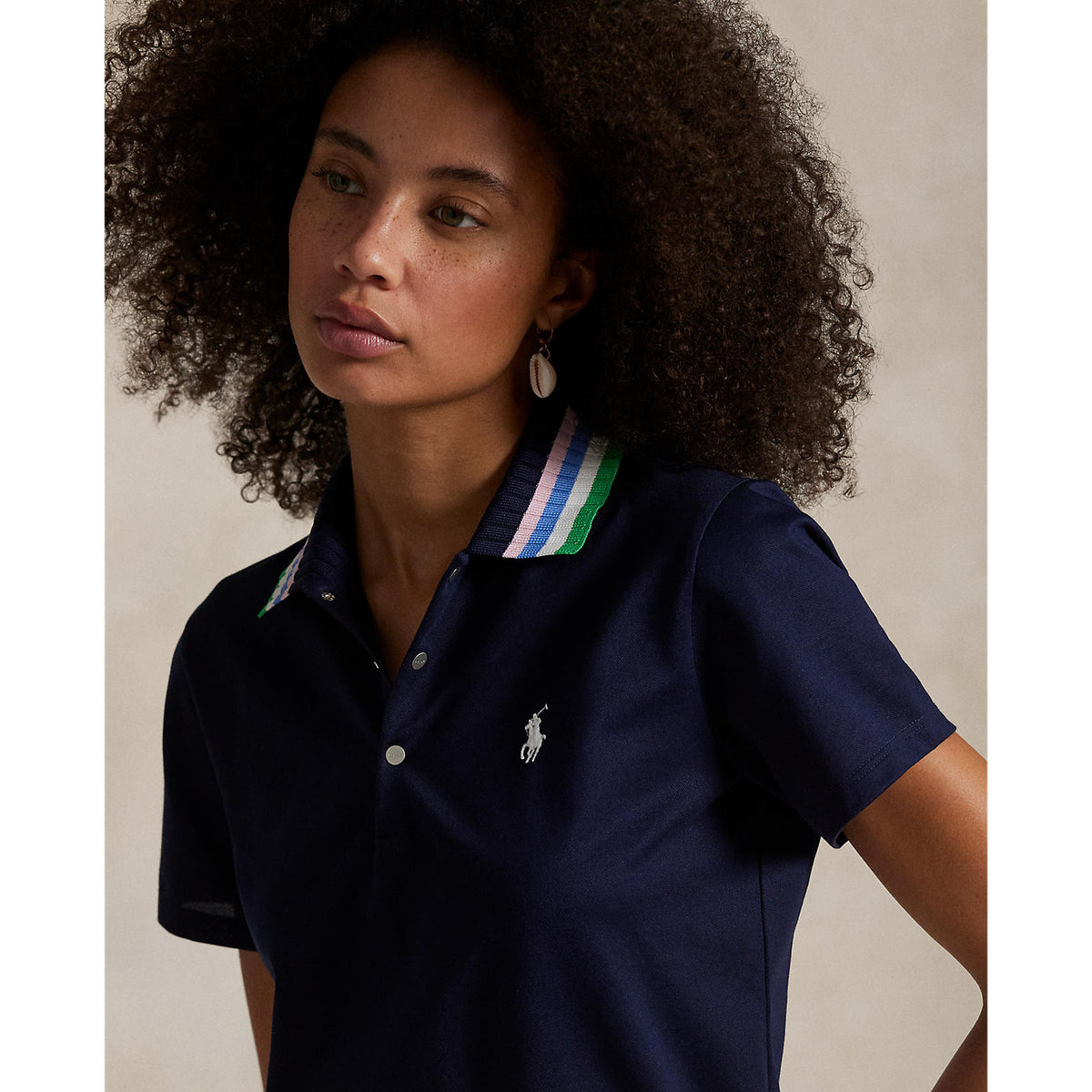 Key Features: -Tailored Fit: Designed for a tapered silhouette that creates a flattering, feminine shape, providing a comfortable and athletic fit. -Premium Detailing: Features a striped knit collar that adds a colorful accent to the classic polo style. -Iconic Branding: The embroidered Pony is featured on the left chest, while the printed "RLX" logo on the right undercollar adds a modern touch. -Stretch Piqué Fabric: Crafted with our signature stretch piqué fabric, this polo offers a comfortable, breathable fit that moves with you while keeping you cool and dry. -Functional Design: A three-button placket ensures a customizable fit, and the even vented hem enhances mobility and airflow for all-day comfort. -Easy Care: Machine washable for convenient maintenance. -The model is 178 cm and wears a size small.