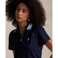 Colorful, Classic, and Crafted for Performance The RLX Ralph Lauren Women's Tour Pique Knit-Collar Polo Golf Shirt in Refined Navy offers a bold pop of color with its striped knit collar, all while maintaining the performance and comfort you expect from RLX. Crafted from our signature stretch piqué fabric, this polo is designed for a tapered silhouette that flatters your figure, giving you a sharp and sporty look both on and off the course.