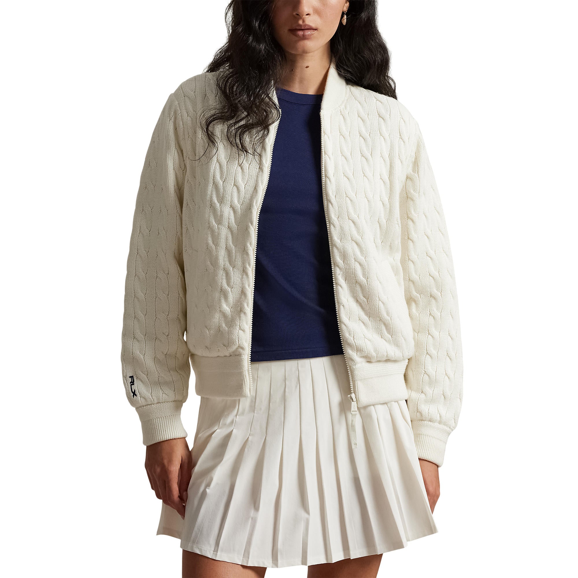 RLX Ralph Lauren Women's Wool Blend Cable Knit Bomber Jacket - Antique White