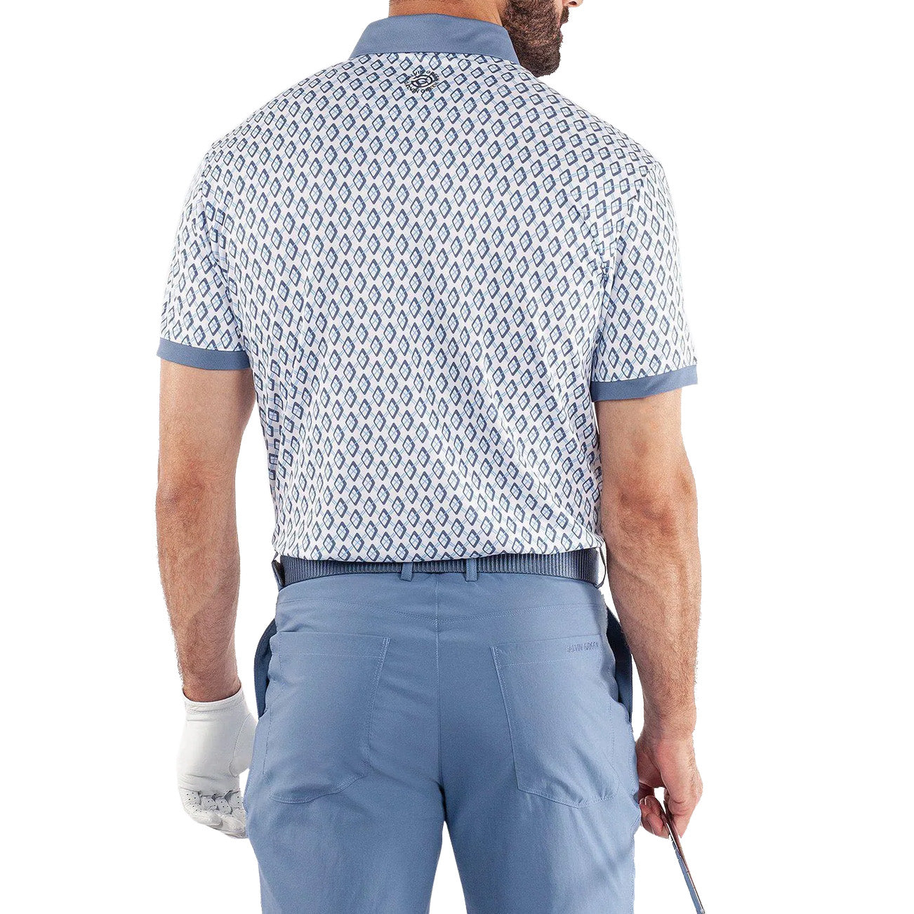 Galvin Green Maxwell Golf Shirt blandar klassisk sofistikering med modern prestanda. Med ett mjukt diamantformat tryck som påminner om 1960-talet Argyle, ger denna skjorta en tidlös estetik till din golfgarderob. Tillverkad med stretchtyg och Ventil8 ™ Plus-teknik ger den exceptionell andningsförmåga, snabbtorkande prestanda och UV-skydd (20+), vilket säkerställer komfort hela dagen. En skräddarsydd krage och ärm-end manschetter ger en förfinad och strukturerad finish, vilket gör denna skjorta perfekt för både lek- och klubbhuskläder.