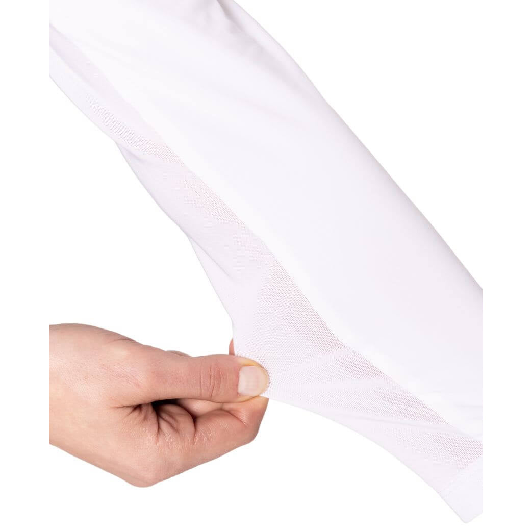 Golftini Women's White Long Sleeve Sport Polo kombinerar klassisk stil med prestationsdriven funktionalitet. Denna polo är utformad från lätt, fuktig tyg och håller dig sval och bekväm under hela din runda. Feminina prinsessamsömmar och andningsbara understörningsnätpaneler ger en smickrande passform och förbättrad ventilation, medan UPF 30+ solskydd och rynkfri prestanda gör det idealiskt för soliga dagar på banan.