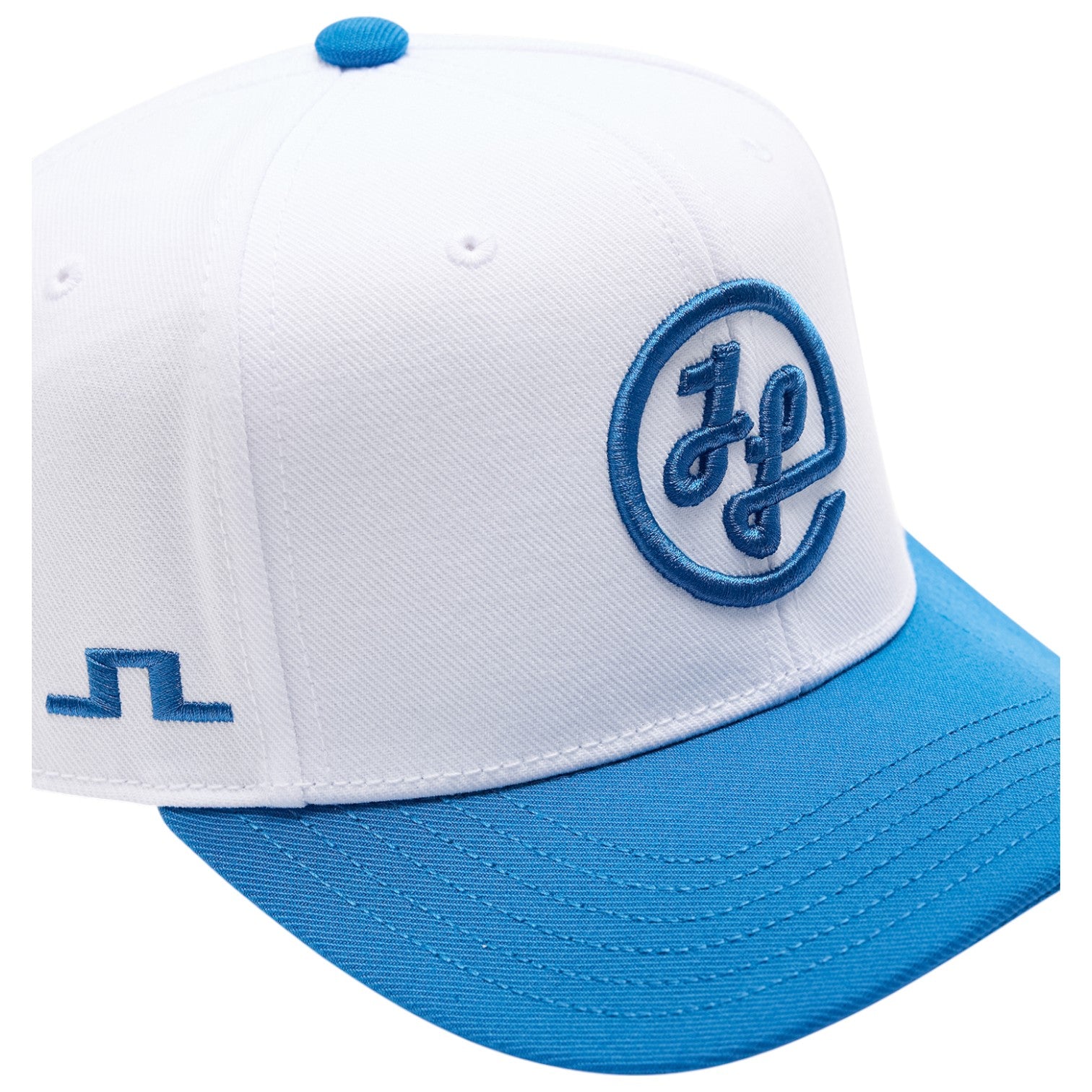 Signature Branding: Logotypbroderi mitt fram, J.LINDEBERG branding mitt bak, präglad logotyp på stiftet och Bridgebroderi på sidan.