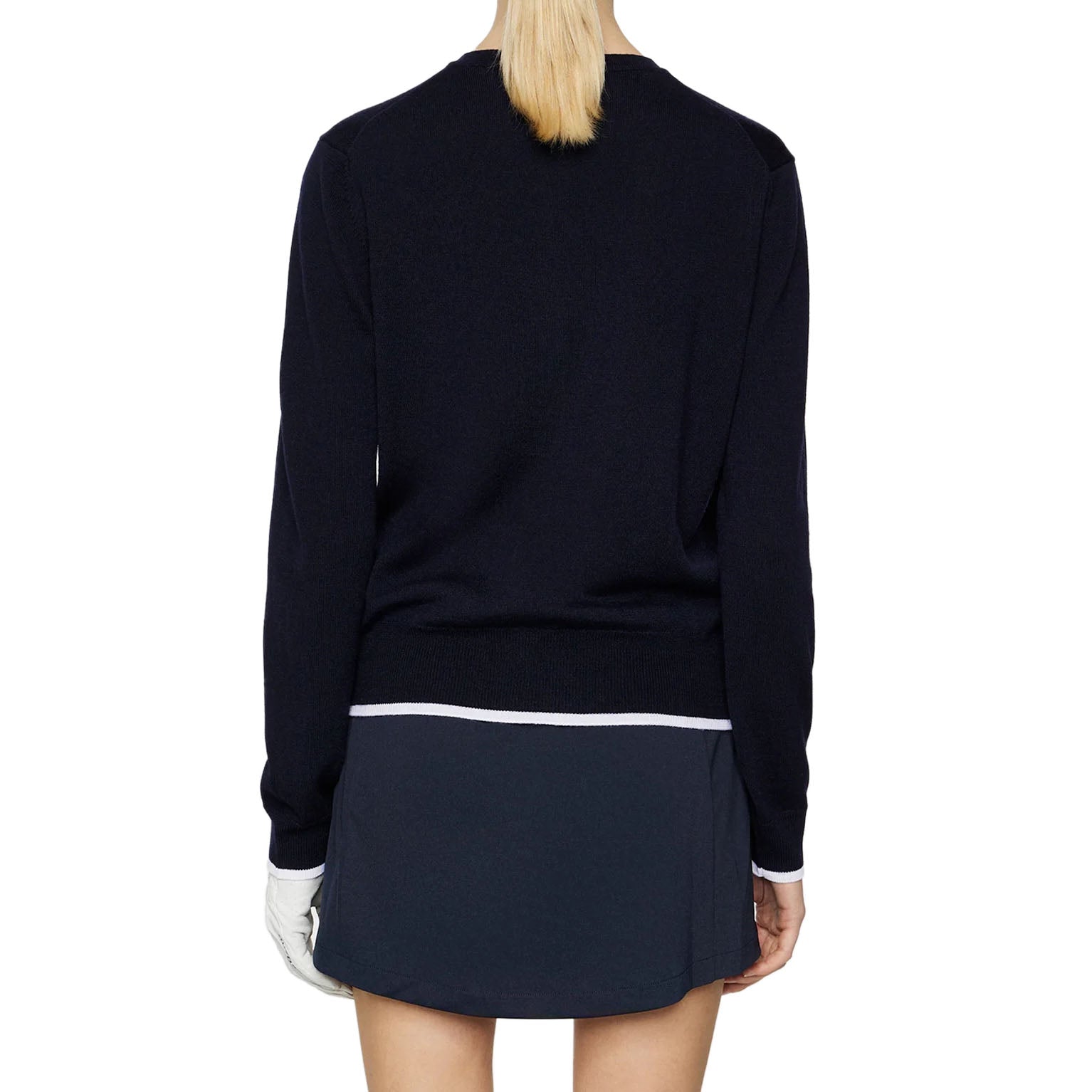 Höj din kursstil med J.Lindeberg Women's Joanna Sticked Golf Cardigan. Denna eleganta, lätta kofta är designad för mångsidighet och prestanda, med en förfinad stickning som erbjuder naturlig luktkontroll, fukthantering och termoreglering. Dess eleganta detaljer - inklusive tonalbryggbroderier vid kragen och kontrast tippar i bottenfem och manschetter - gör det till ett framstående skiktningsstycke för alla runda eller avslappnade utflykter.