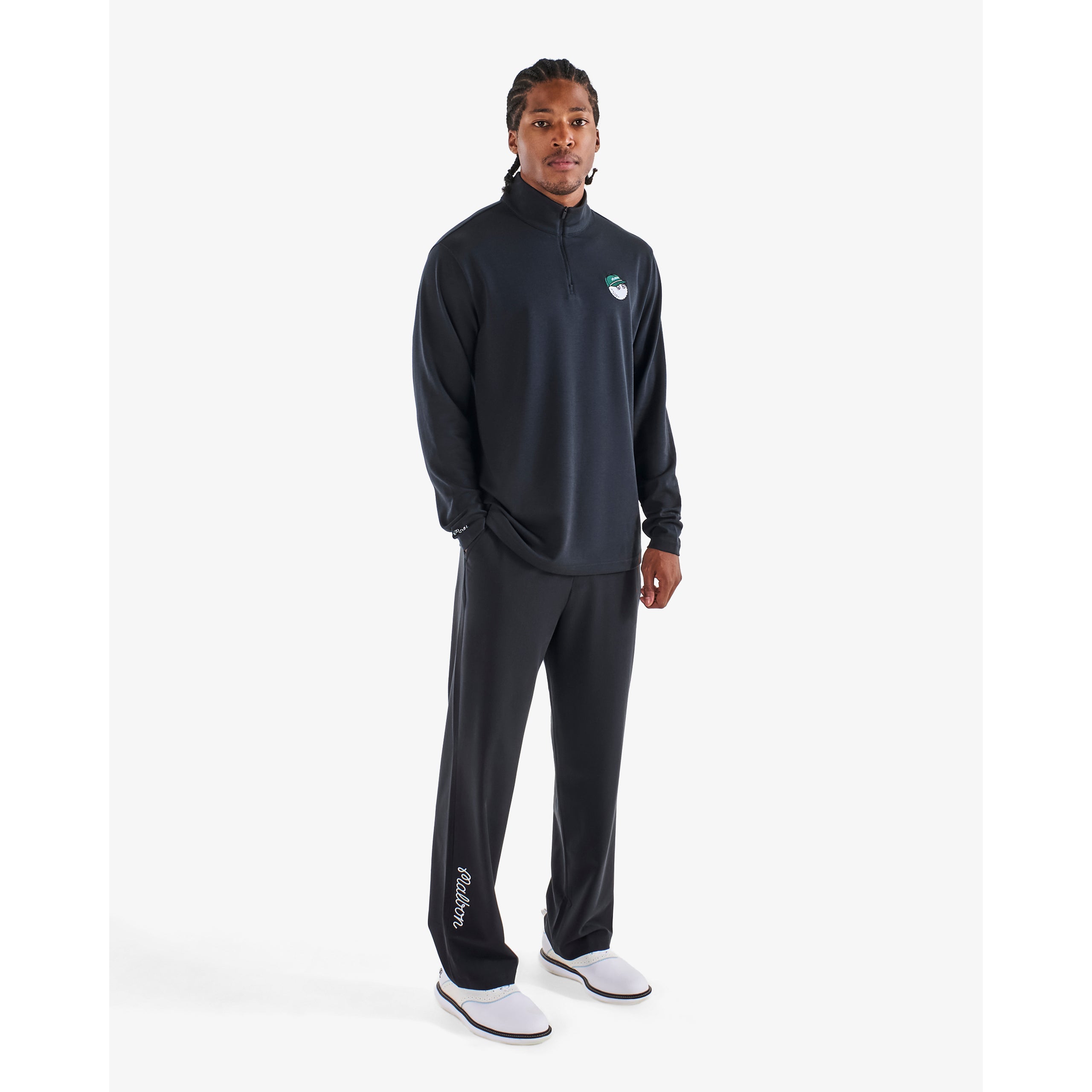 Tillverkning: 73% polyester 20% bomull 7% elastan Coolcore® tyg Dragkedja med gylf Fickor fram och bak Broderad Malbon-manuslogotyp på höger ben Vävd Malbon flagga etikett på baksidan 29,5" innersöm
