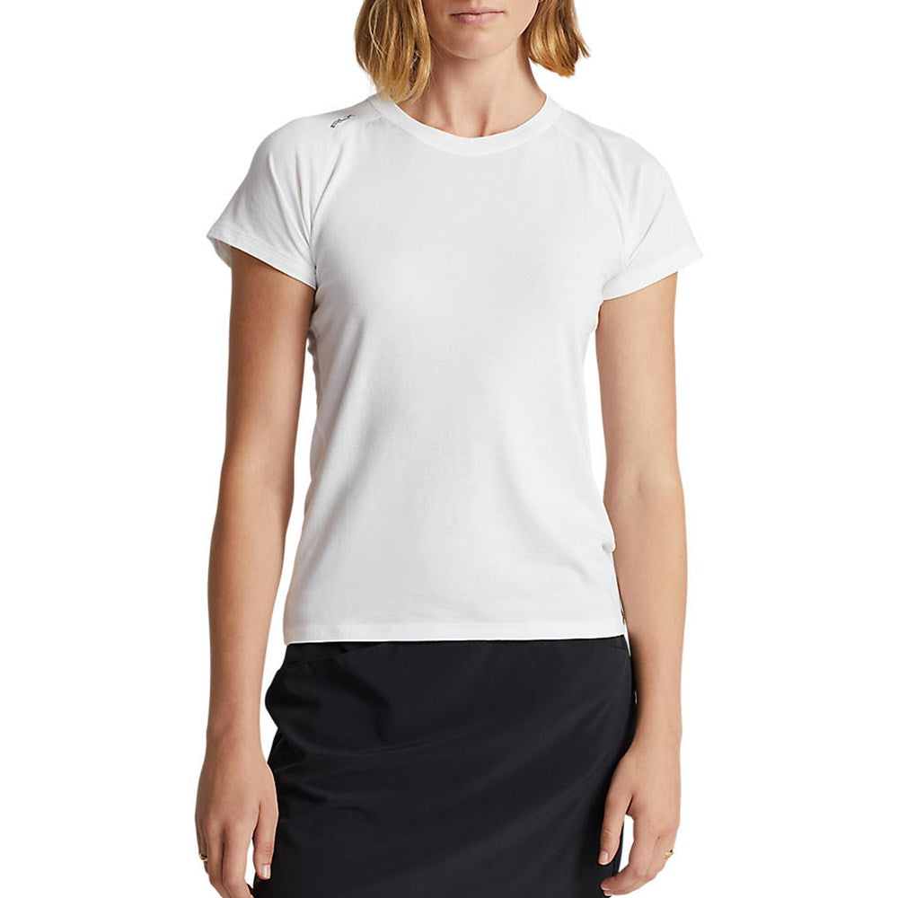 Avsedd att slå vid höften. Crewneck. Korta sadelärmar. Center Back Seam. "RLX" tryckt vid höger axel.