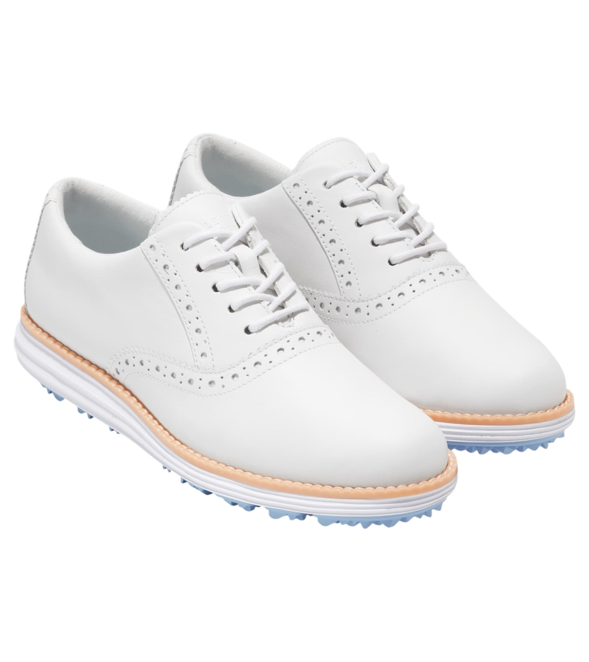 Cole Haan 女式 ØriginalGrand Shortwing 女士高尔夫鞋 - 光学白色/蓝铃花