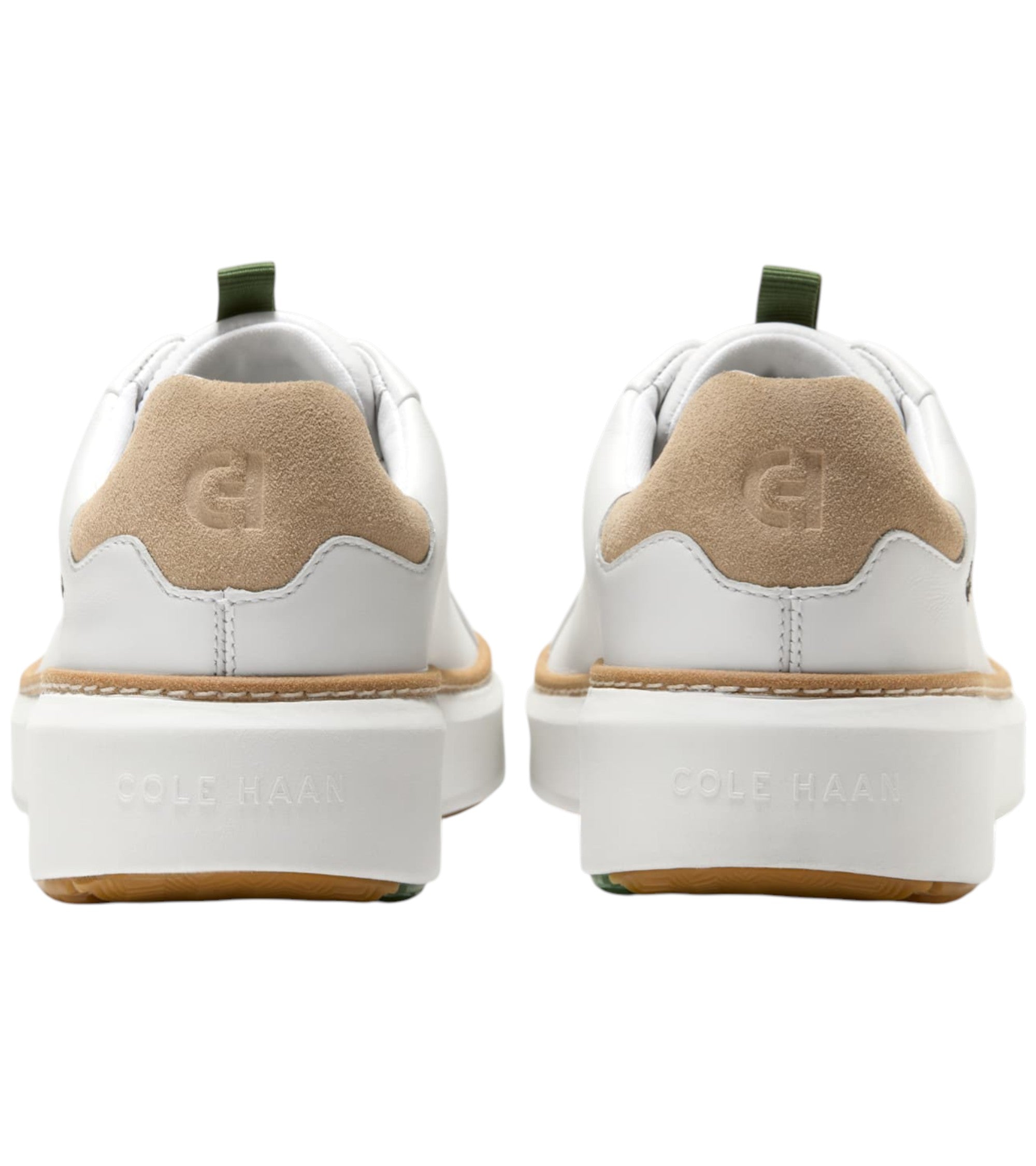• 白色全粒面防水皮革鞋面,鞋跟采用石南花色;七孔系带系统