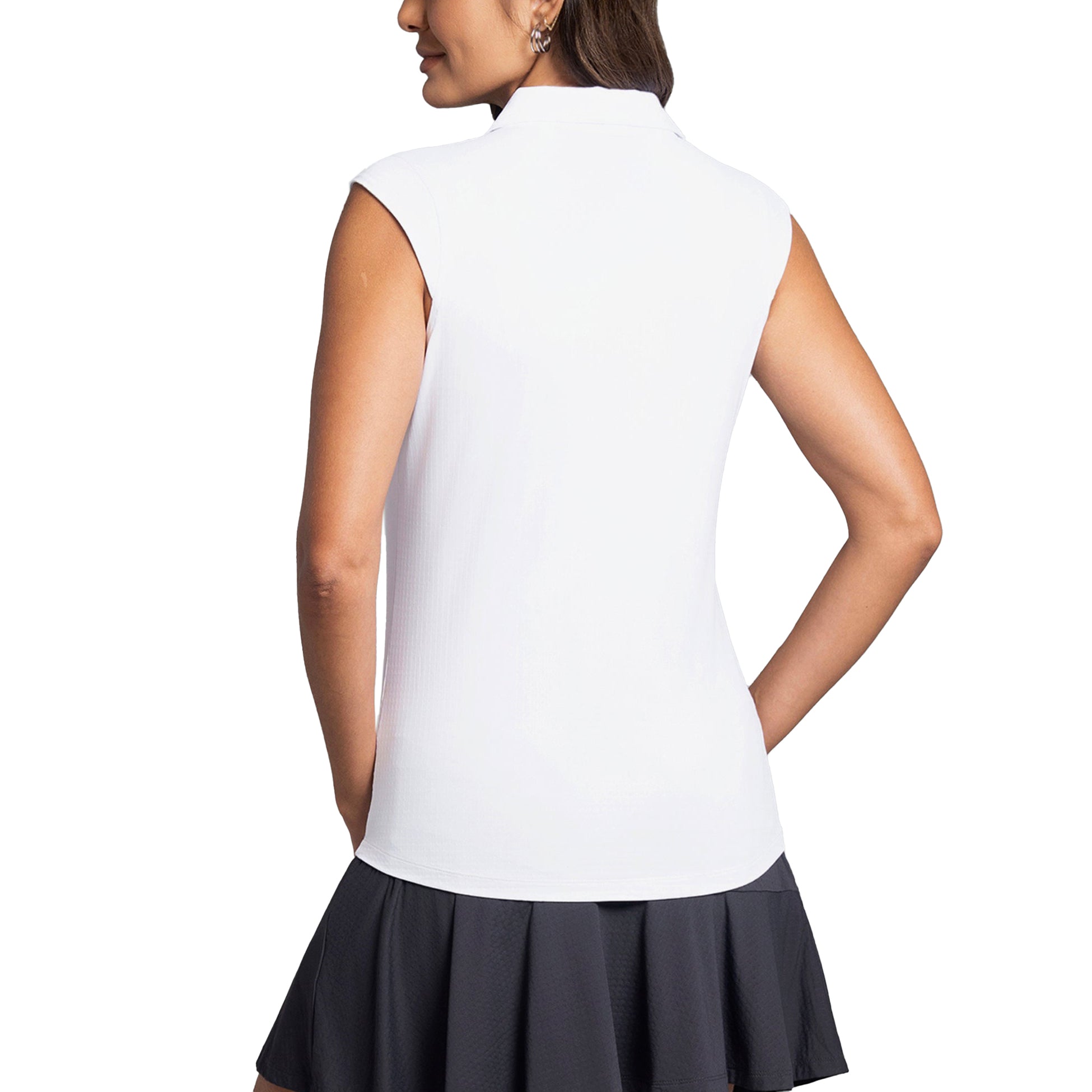 IBKUL 女式纯色无袖拉链高尔夫 Polo 衫 - 白色
