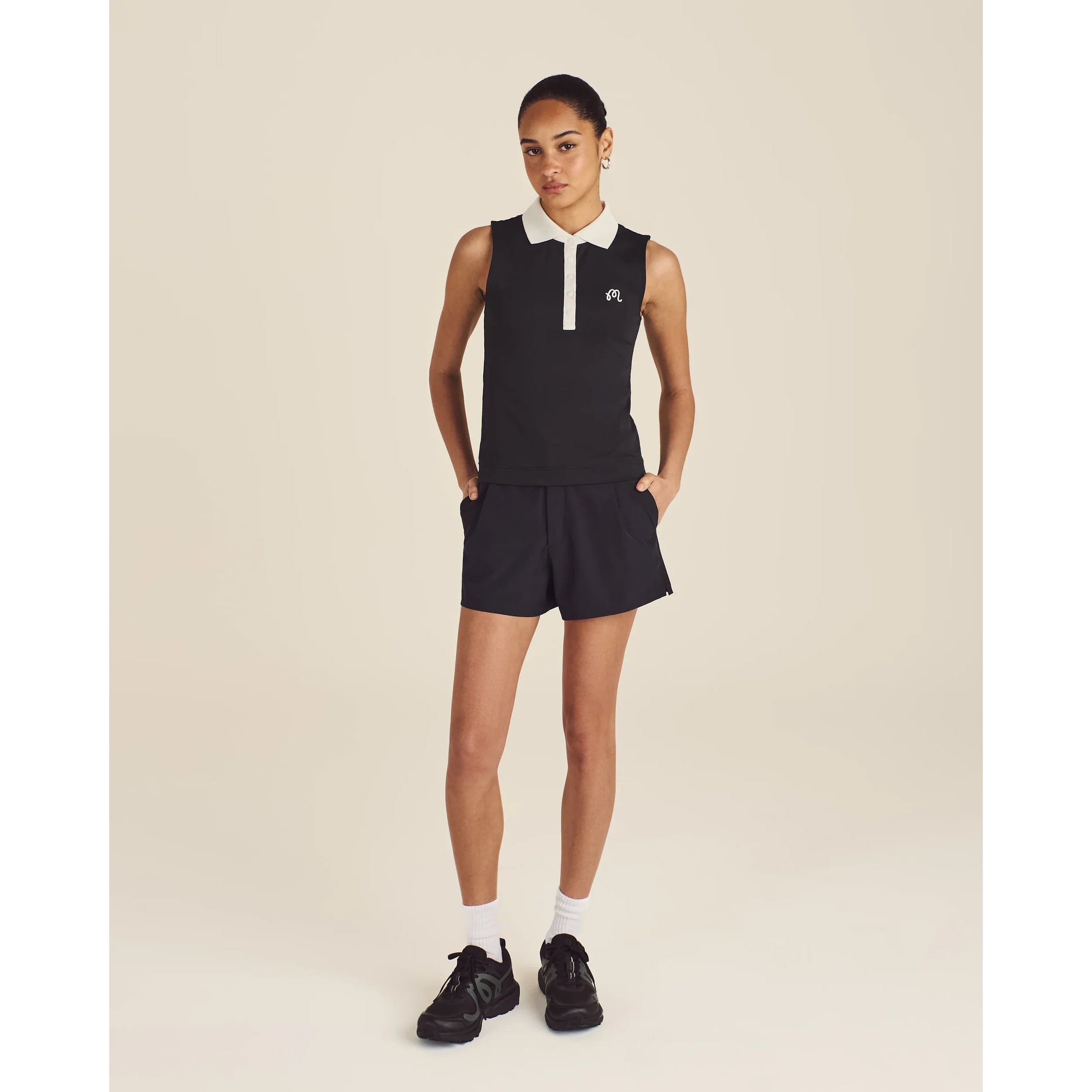 Malbon 女式 Claudia 无袖高尔夫 Polo 衫 - 黑色